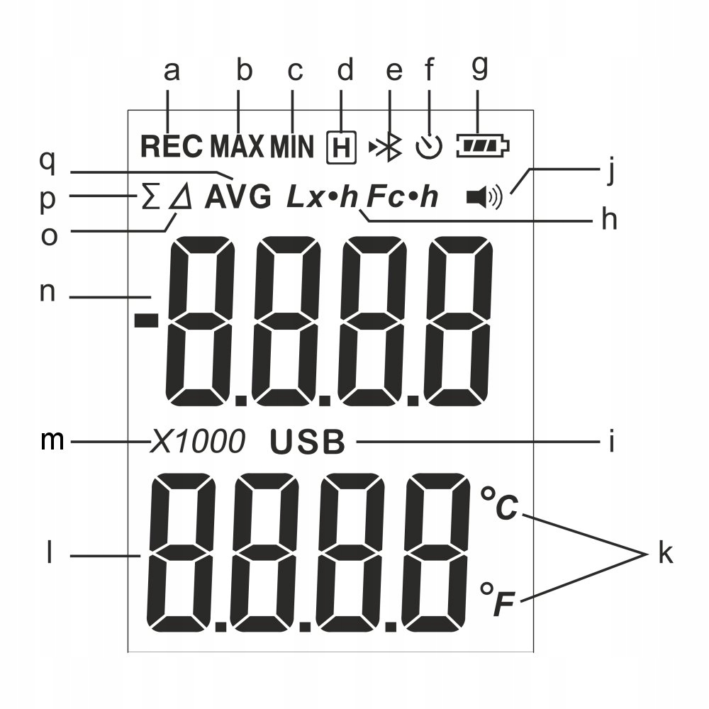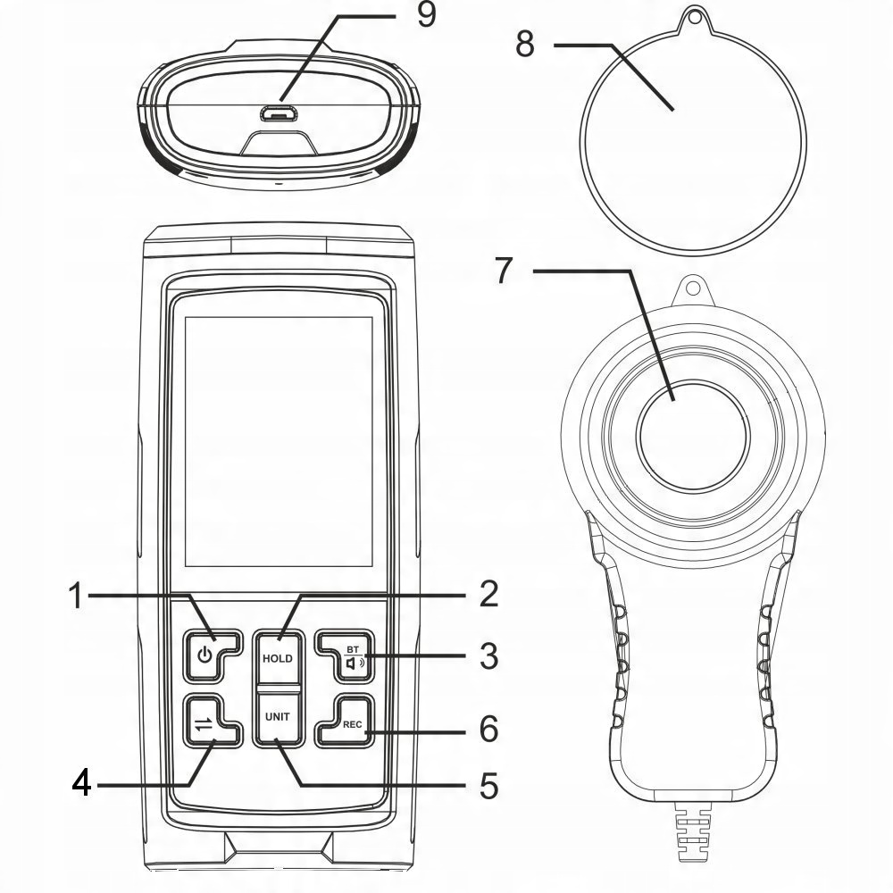 Urządzenie służy do pomiaru wartości natężenia oświetlania, posiada funkcje odczytu wartości minimalnej i maksymalnej dla bieżącego pomiaru, wskaźnik temperatury, a także możliwość zatrzymania wartości pomiaru, zapisu danych, odczytu średniej wartości itp.
