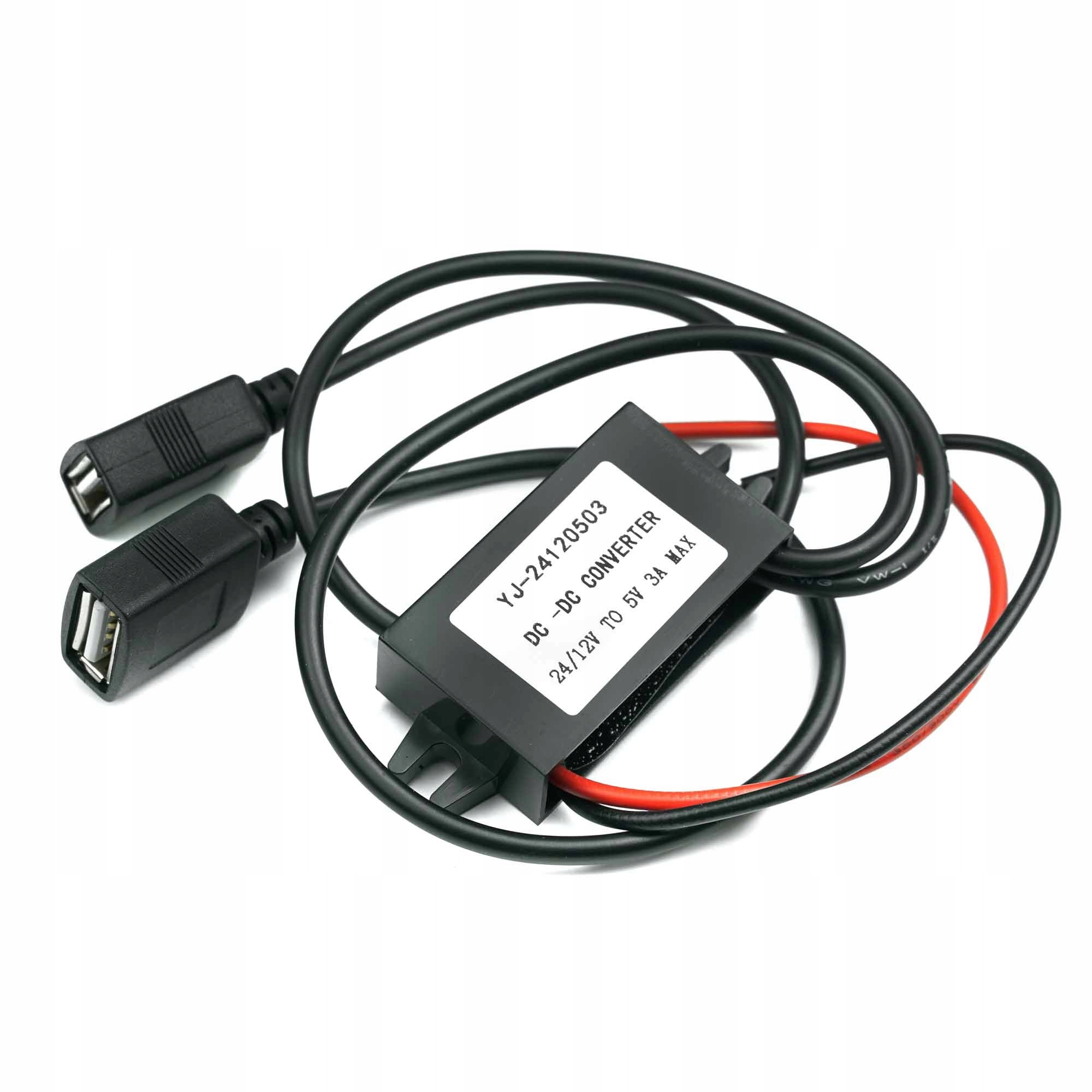 Przetwornica typu step-up potrafiąca z napięcia w przedziale od 12V do 24V dać na wyjściu stabilne 5V i przepuścić duży prąd o natężeniu nawet 3A. Na wyjściu posiada 2 porty USB. Doskonale sprawdzi się jako mocna ładowarka do telefonu w samochodzie, jako źródło zasilania kamerki lub innego urządzenia. Obsługuje szybkie ładowanie, posiada bardzo dobrą wydajność i nie przegrzewa się nawet podczas długiej intensywnej pracy. Bardzo wygodna w montażu. Obudowa przetwornicy posiada klasę szczelności IP67 co oznacza odpornośc na krótkie zanurzenie w wodzie, zachlapania i kurz.