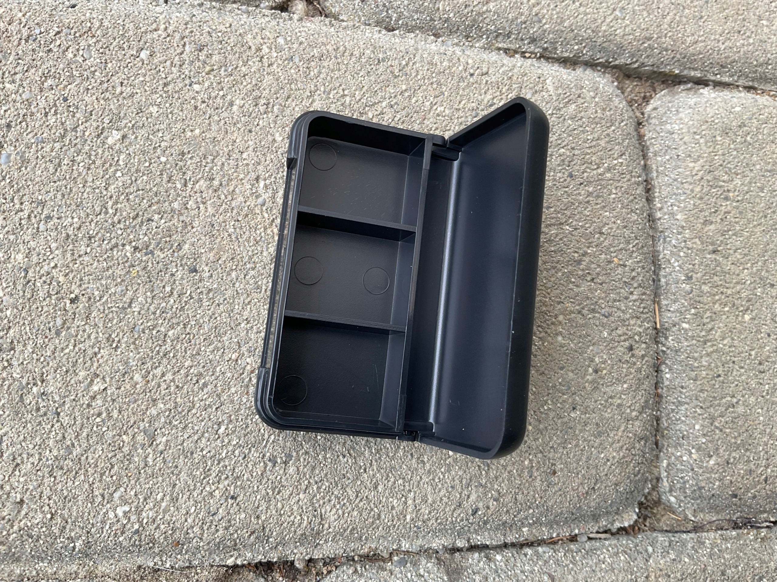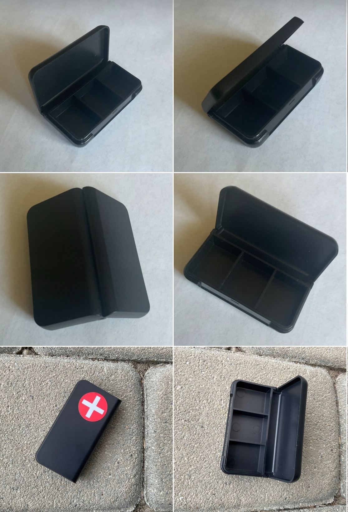 Organizer "3" kasetka do przechowywania tabletek, pigułek, drobiazgów. Gładki bez opisów. Zamkniecie na zatrzask (klik) .