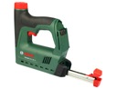 Zszywacz elektryczny do szybkiego mocowania materiałów izolacyjnych, folii, tkanin, tapet, listew, itp. na powierzchniach drewnianych lub wykonanych z materiałów drewnopodobnych.