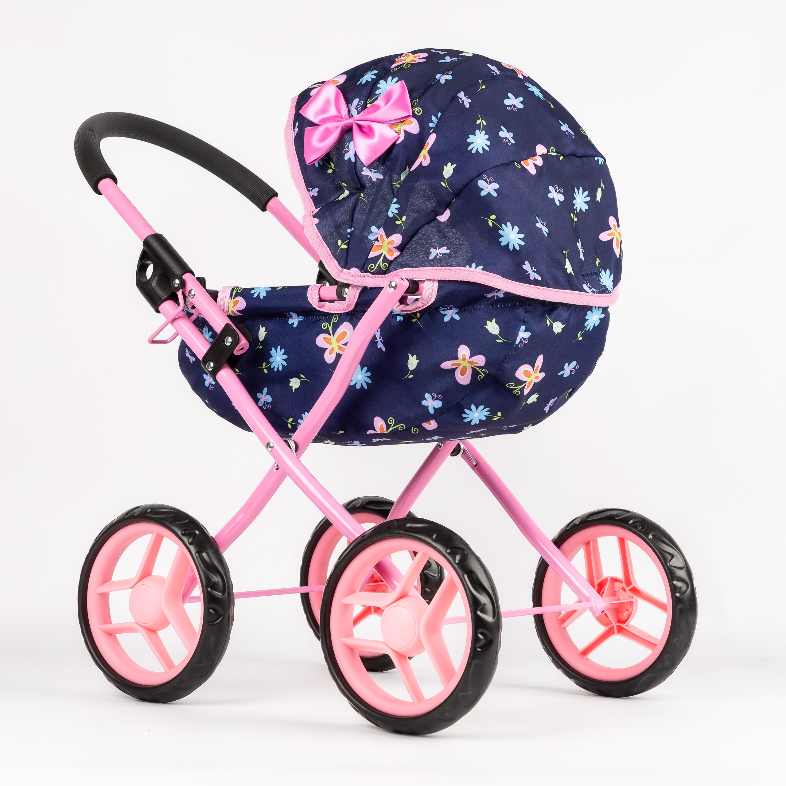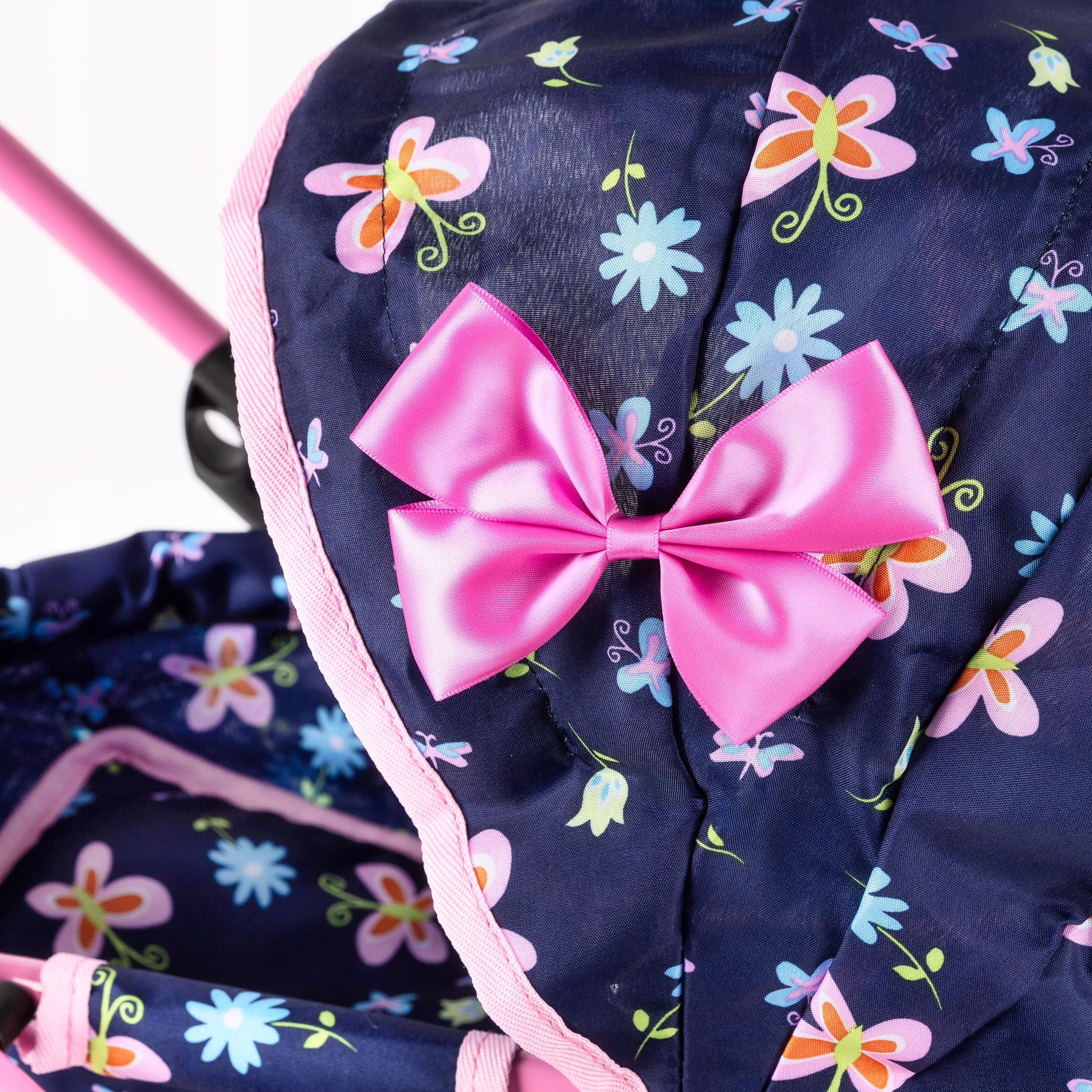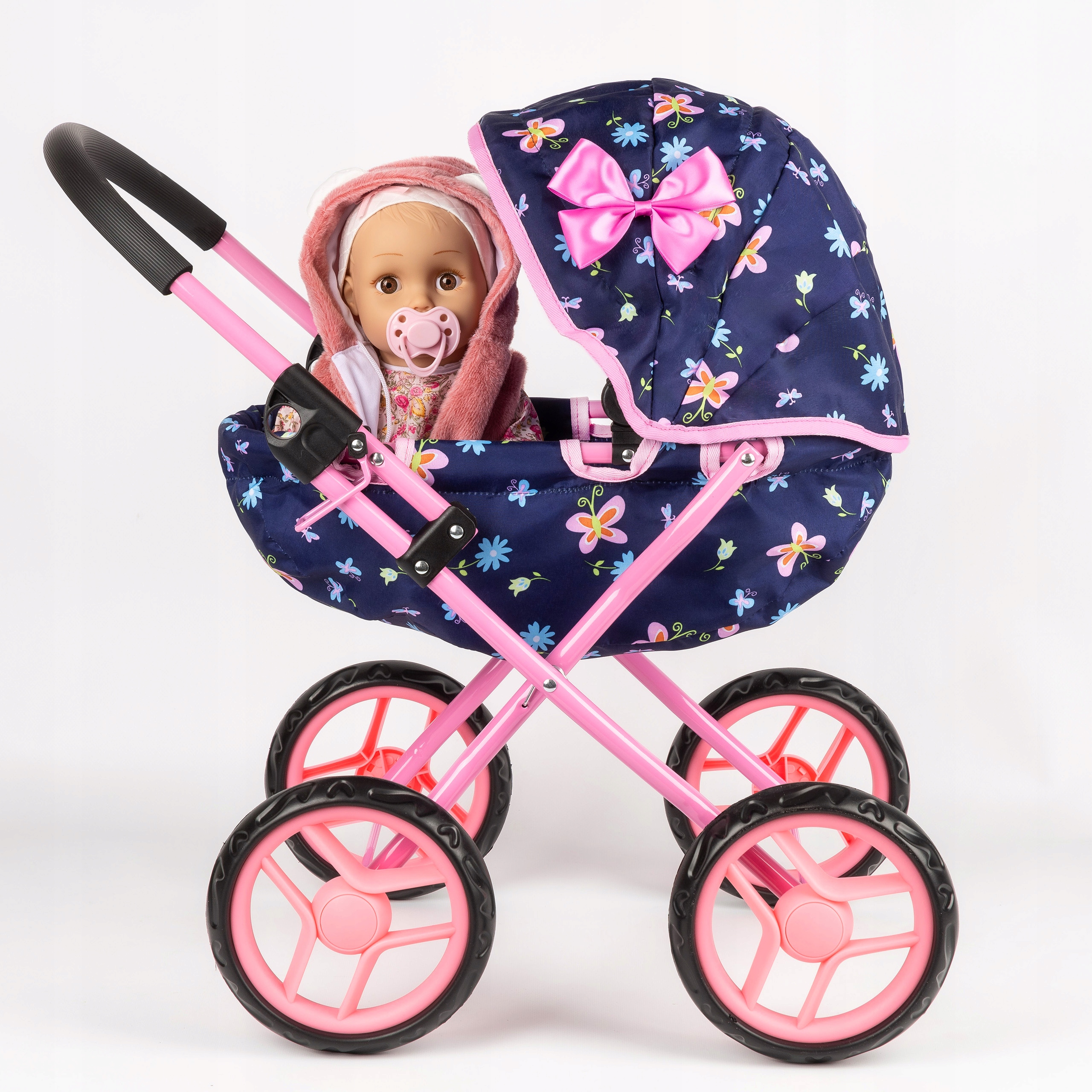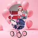 Wózek wyposażony jest w składany daszek, który nie tylko dodaje mu uroku, ale także zapewnia funkcjonalność i wygodę podczas zabawy. Składany daszek chroni lalkę przed słońcem lub deszczem, a możliwość jego łatwego złożenia i rozłożenia sprawia, że wózek jest praktyczny i dostosowuje się do różnych warunków i scenariuszy zabawy.