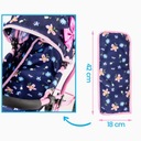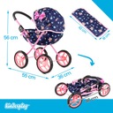 Wózek jest przystosowany do lalek o maksymalnej długości 41 cm, co pozwala na dopasowanie większości popularnych modeli (np. Baby Born, Kinderplay). Wózek nie zawiera lalki. Zdjęcie ma na celu pokazania lalki, w jaki sposób siedzi/leży w wózeczku. Lalkę można kupić na innej aukcji.