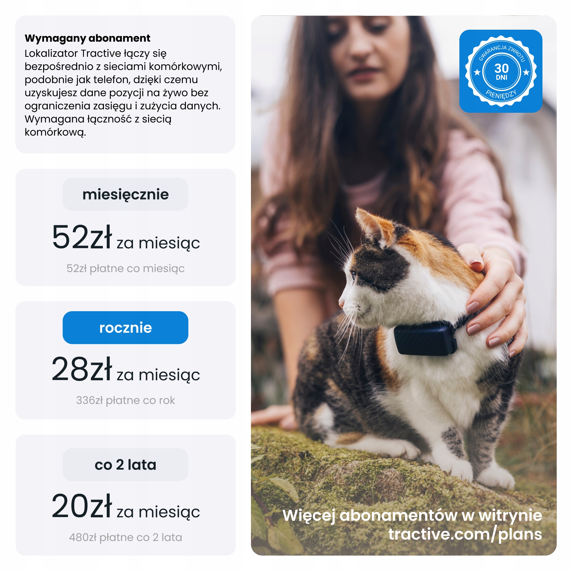 ** Цена на основе 2-летнего плана с полной предоплатой. Цены могут быть изменены. Последние новости на сайте tractive . com/plans.