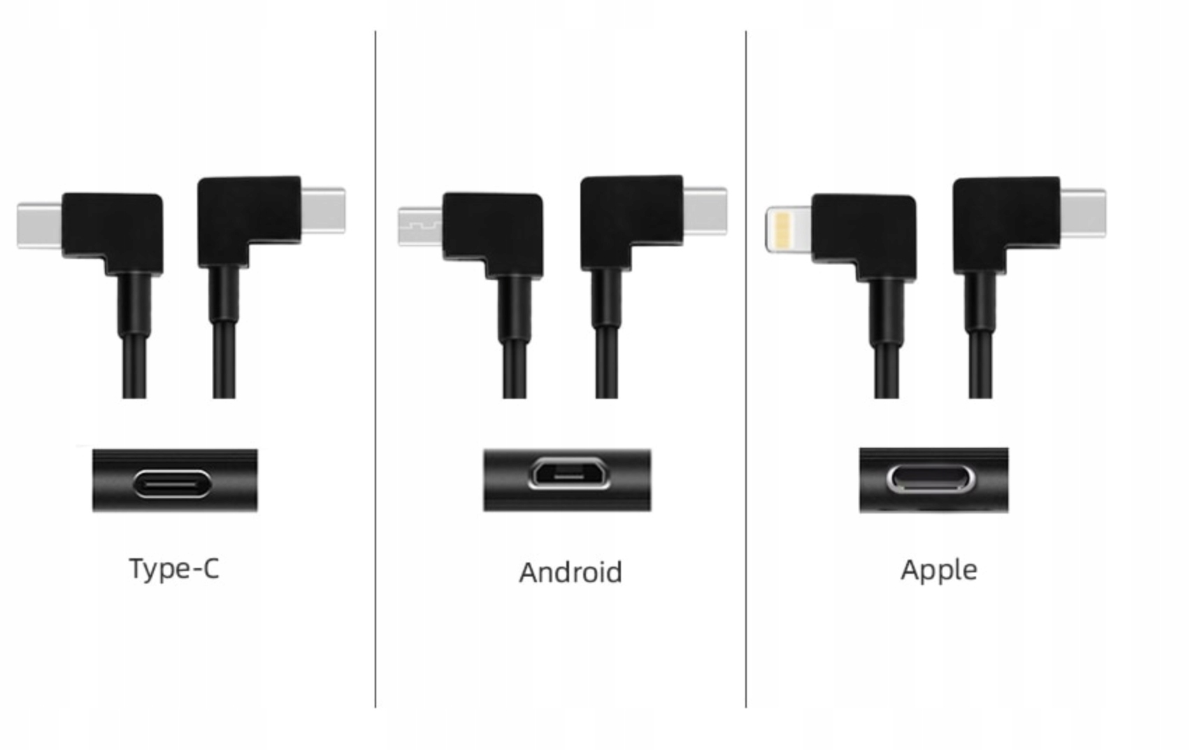 Przewód pozwala na podłączenie kontrolerów od dronów z telefonami / smartfonami oraz tabletami. Dzięki temu możemy przesyłać dane i obraz między kontrolerem, a zamocowanym w nim telefonem / smartfonem / tabletem.