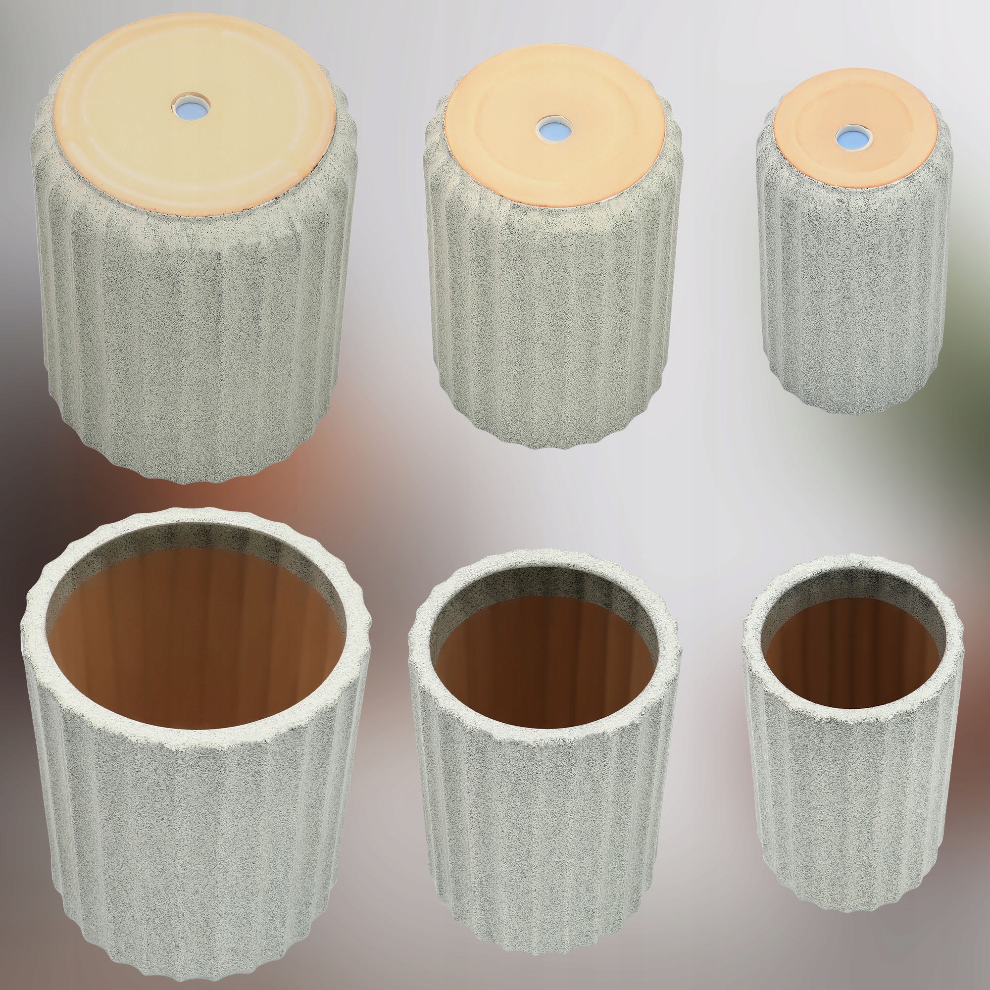 Komplet trzech doniczek nadaje się do dekoracji dowolnych wnętrz. Doniczki dodadzą elegancji i uroku każdemu pomieszczeniu. Każda donica w tym zestawie została ręcznie wykonana z ceramiki szkliwionej, co gwarantuje nie tylko trwałość, ale również oryginalność.