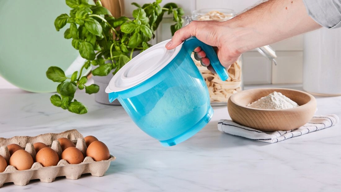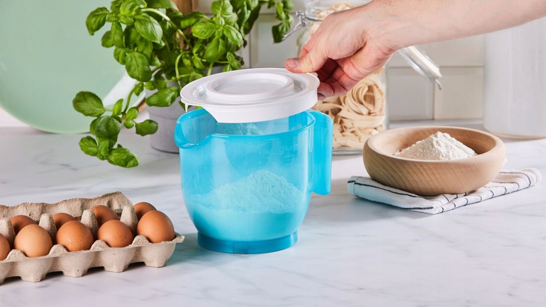 ✅ Można w nim przechowywać mieszane ciasto np. naleśnikowe w lodówce bez konieczności przelewania do innego pojemnika