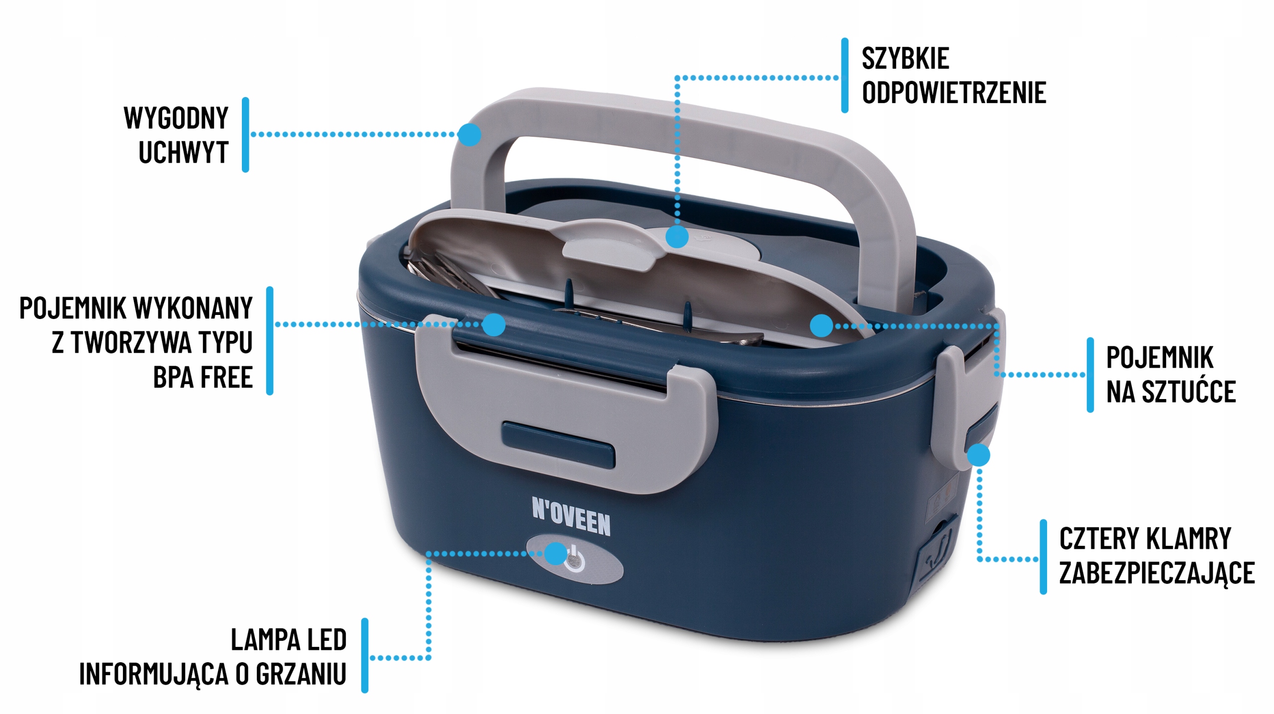 Urządzenie wyposażone jest w element grzewczy PTC, który umożliwia podgrzanie jedzenia do 60°C w ciągu 20 minut. Szczelnie zamknięcie umożliwia utrzymanie temperatury posiłku.