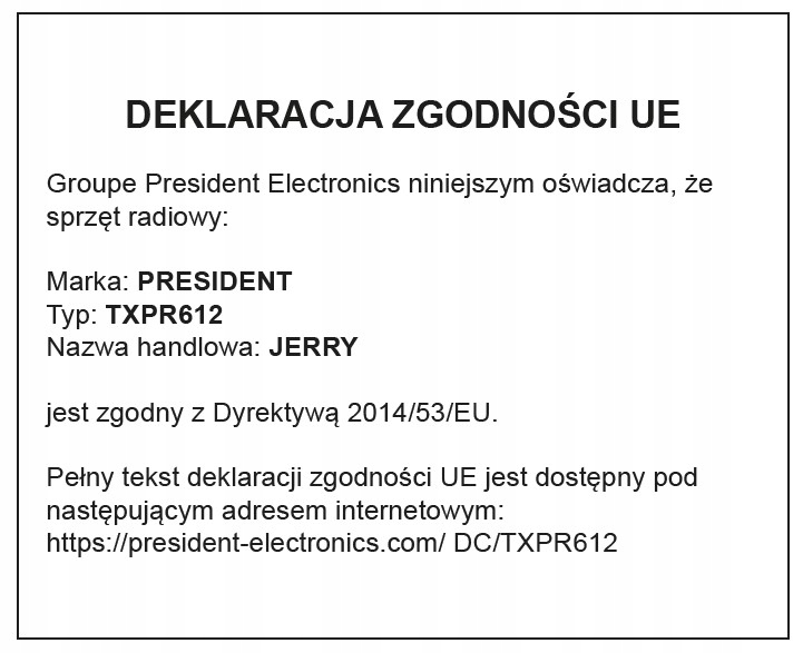 President Jerry - nowoczesne CB radio ręczne 40 kanałów AM/FM: