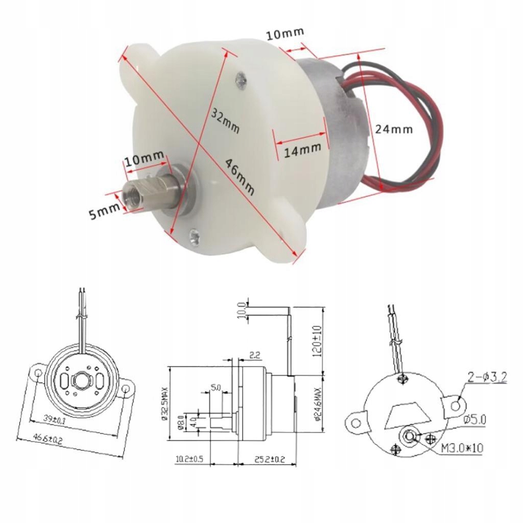 Prędkość obrotowa: 3V--12RPM, 6V--24RPM, 12V--48RPM