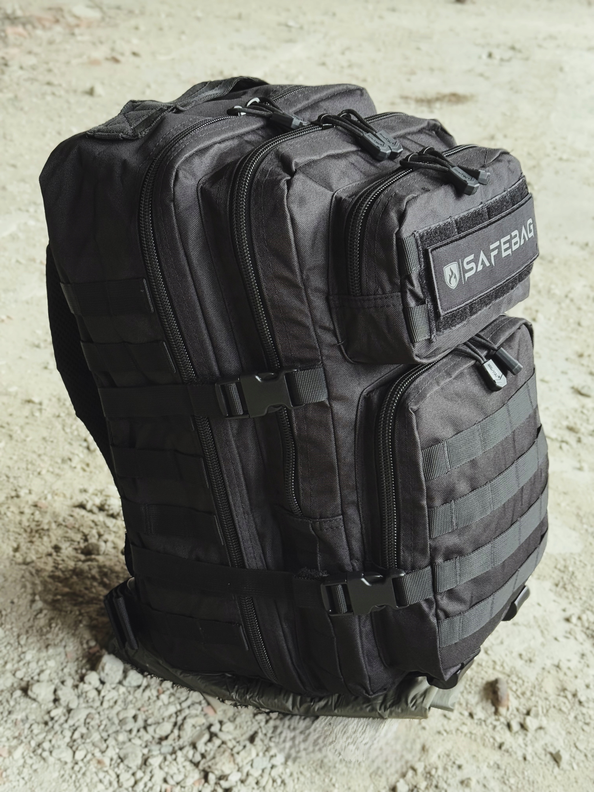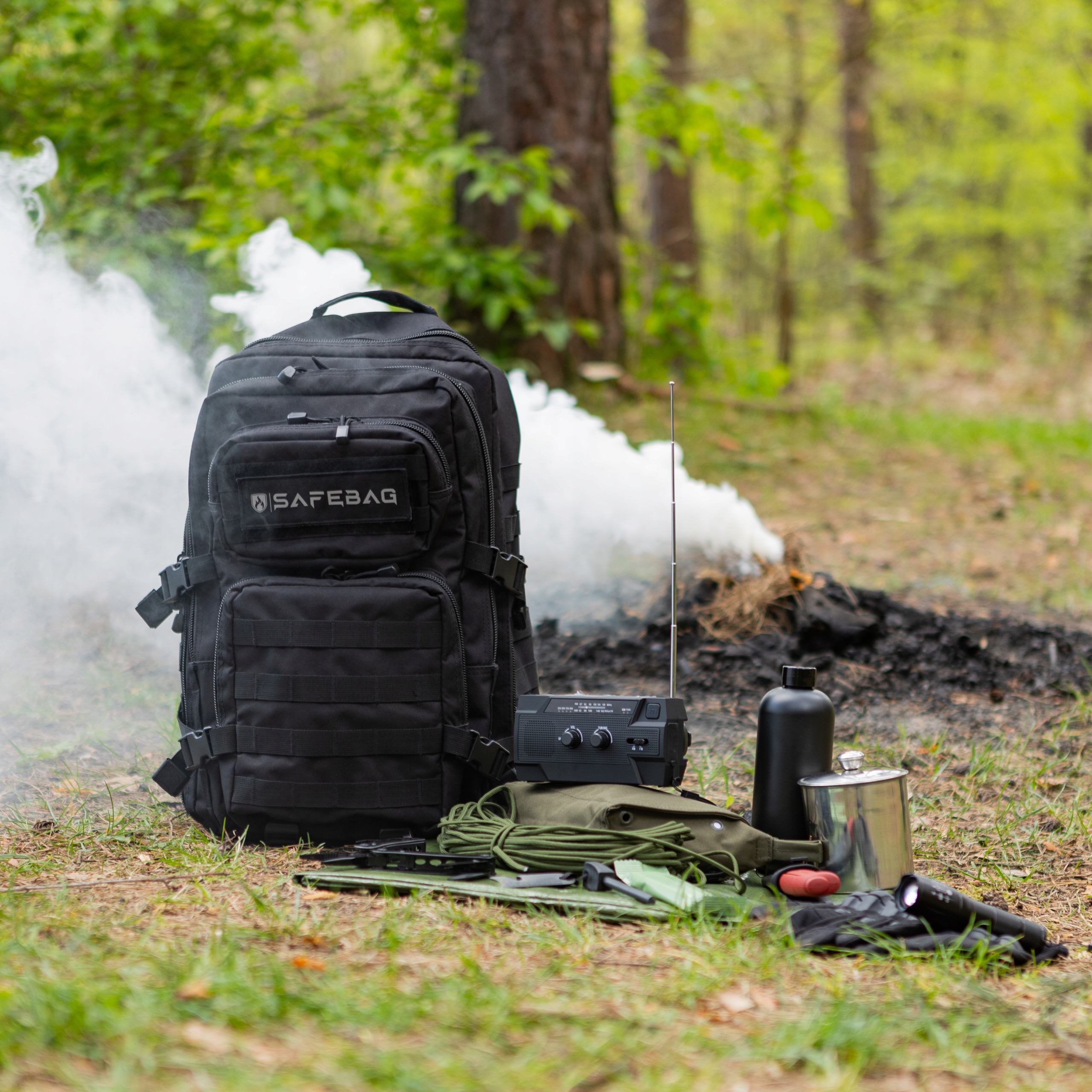 Awaryjny plecak ucieczkowy SAFEBAG MAX to dokładnie przemyślany, wysokiej jakości zestaw ratunkowy, który może okazać się wyjątkowo przydatnym narzędziem w sytuacji zagrożenia i konieczności natychmiastowej ewakuacji. Ekwipunek składa się z wytrzymałego plecaka ucieczkowego uzupełnionego o 6 rozbudowanych modułów, wyposażonych w szeroki zakres elementów, które umożliwią Ci przetrwanie w nawet najgorszych warunkach. Plecak ewakuacyjny zawiera 69 unikalnych elementów, składających się na 140 użytych produktów, zapakowanych w trwały plecak taktyczny uznanej niemieckiej marki, o pojemności ok 40l.