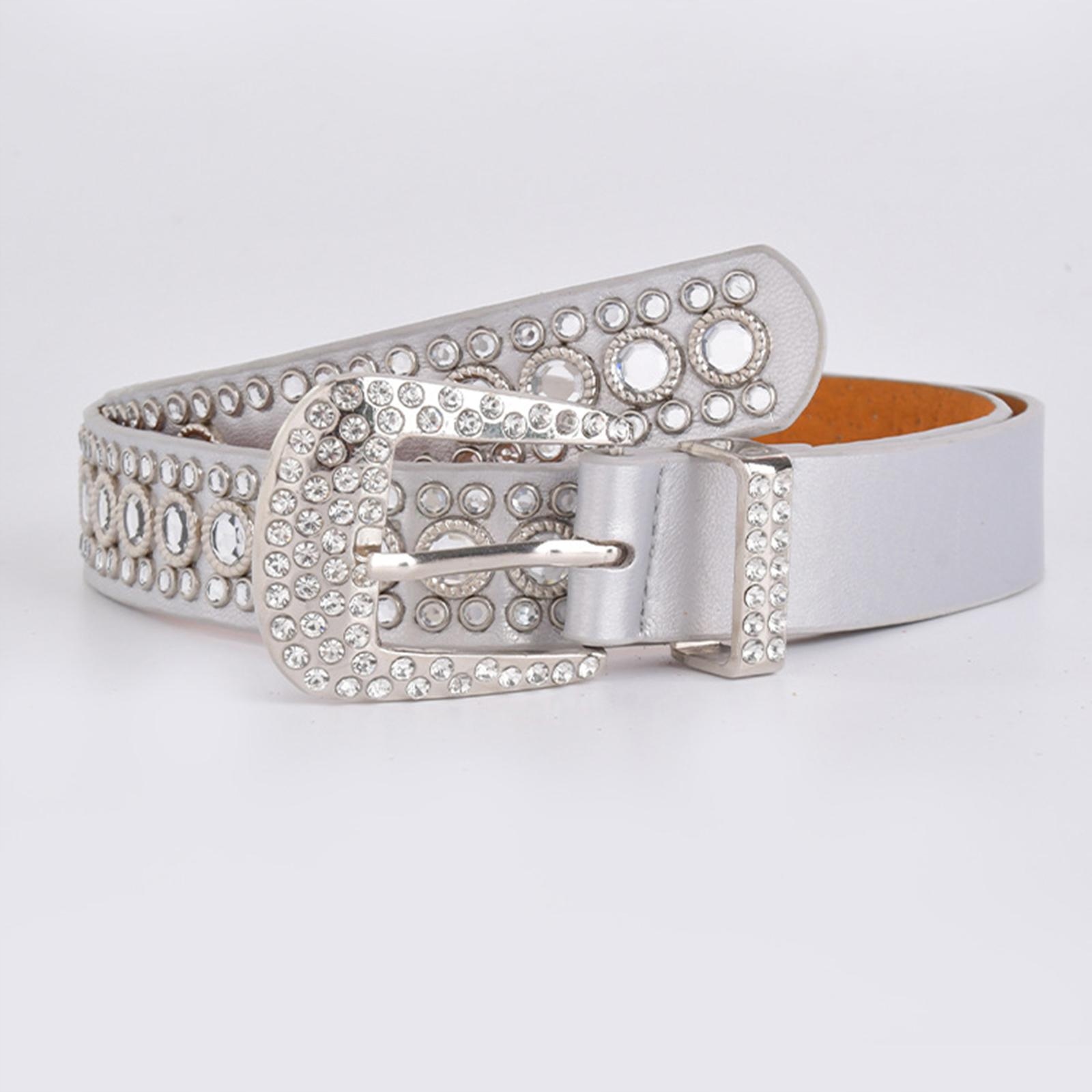 Pasek z dżetów Moda PU Skórzane kryształowe paski Pas do spodni wyjściowych Białe
