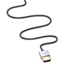 Cienki i elastyczny kabel HDMI został specjalnie zaprojektowany do podłączania urządzeń w miejscach o ograniczonej przestrzeni lub z utrudnionym dostępem do portów. Smukła obudowa zmniejsza również masę kabla o około 80% w porównaniu ze standardowymi kablami CROMO, co czyni go idealnym do podłączania urządzeń umieszczonych w szafach lub do ekranów zamontowanych blisko ściany.