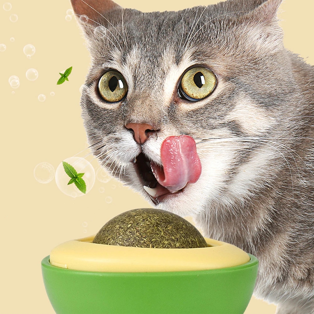 Zabawka z kocimiętką posiada samoprzylepną powierzchnię, co umożliwia jej przymocowanie do dowolnej gładkiej powierzchni, takiej jak ściana, podłoga, okno itp.