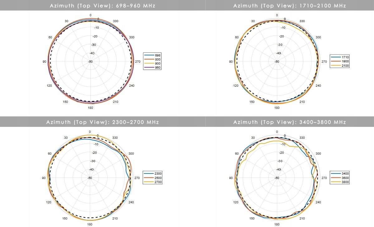 - Wzmocnienie przy 3400–3800 MHz: 6 dBi