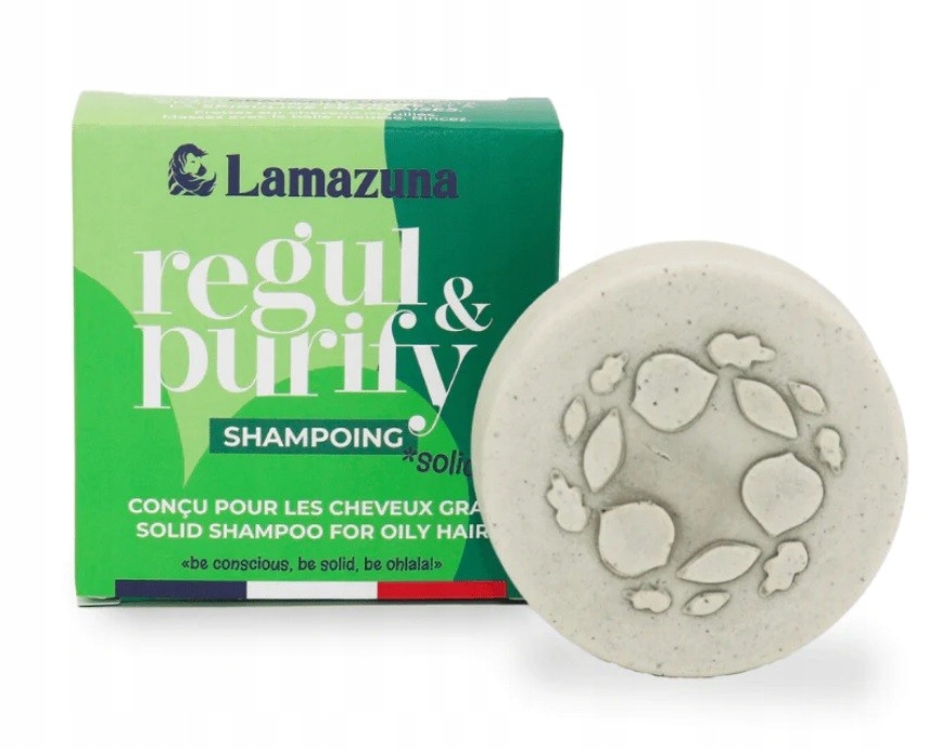 Szampon w kostce do włosów tłustych, reguluje i oczyszcza, ZIELONA GLINKA I SPIRULINA, 70 ml, Lamazuna