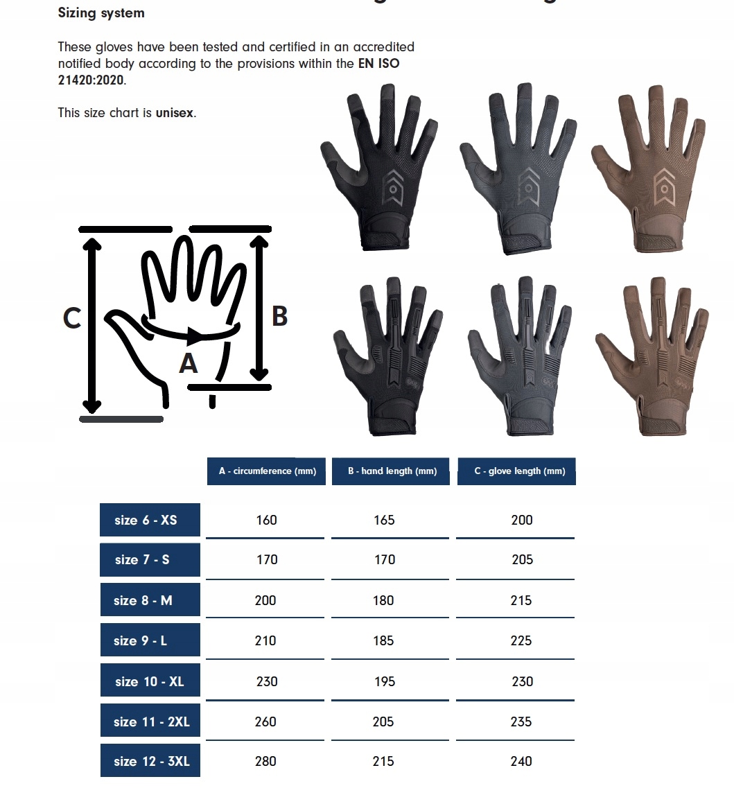 Konstrukcja C-Grip chroni palec wskazujący przed oparzeniem podczas strzelania, a wzmocniony kciuk o unikalnej konstrukcji pozwala na łatwe przeładowanie magazynka. Przeszycia na kciuku oraz na palcach wskazującym i środkowym pozwalają na obsługę ekranów dotykowych.