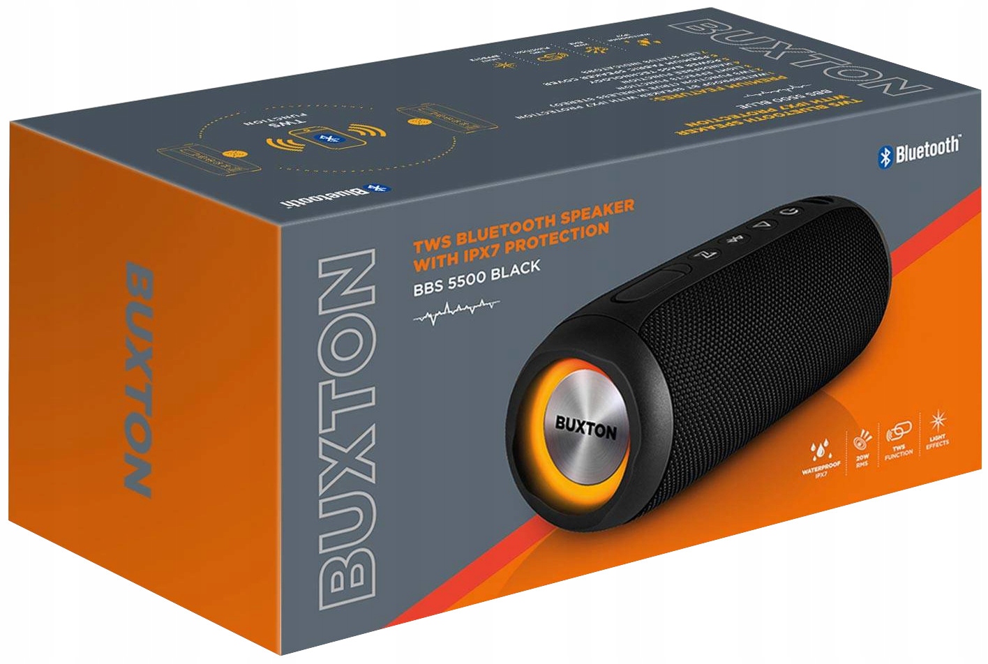 Praktyczny, utalentowany, łatwy do przenoszenia. Głośnik Bluetooth Buxton jest doskonałym źródłem czystej i zaskakująco dynamicznej reprodukcji muzyki i słów. Na pierwszy rzut oka trudno uwierzyć, jak dobrze brzmi ten niewielki głośnik. I można go połączyć bezprzewodowo przez TWS z innym systemem BBS 5500! Te bliźniaki dostarczą solidną moc 60 W, więc niezależnie od tego, czy impreza odbędzie się w salonie, w ogrodzie, wśród bloków czy na łące, dźwięk będzie na pewno doskonały. Pełnozakresowy głośnik typu „Racetrack” jest uzupełniony dwoma pasywnymi głośnikami, Power Bass z kolei pobudza basy. Możesz grać w dowolnym miejscu – po naładowaniu baterii do pełna i ustawieniu głośności na połowę głośnik może grać bez przerwy nawet przez dziewięć godzin! Teraz wystarczy tylko wybrać muzykę i można dać czadu.