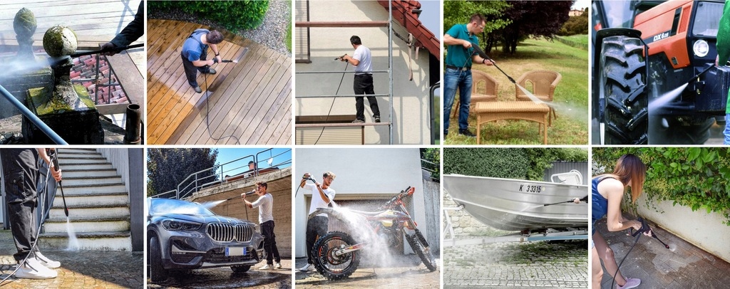 Благодаря этой шайбе в вы удалите грязь с разных поверхностей. Мойка под давлением-одна из самых эффективные способы очистки поверхности и прежде всего чем традиционные формы стирки. Кроме того, несмотря на высокое давление, мойка под давлением с соответствующим выбранные аксессуары и чистящие средства не повредят очищаемую поверхность.