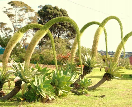 ✔️ его называют "лисий хвост" из-за его длинных дугообразных листьев, которые по форме напоминают хвост лиса. В отличие от многих других агав, ее листья не имеют острых шипов, что делает ее безопаснее для выращивания в саду или дома. Это растение также известно своими эффектные соцветия, которые появляются через много лет и достигают 3 метров высоты!