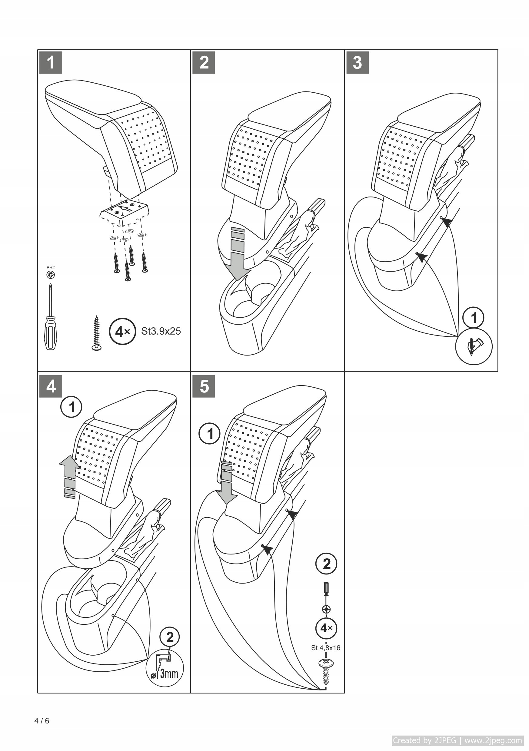 Montaż podłokietnika jest bardzo prosta i nie ma potrzeby odwiedzić serwis samochodowy. Instrukcja obsługi i wkręty do montażu znajdują się w zestawie. Część dolna podłokietnika – adapter, który przykręca się do tunelu środkowego, wykonany jest pod kształt konkretnego modelu auta, dlatego zawsze doskonale pasuje.