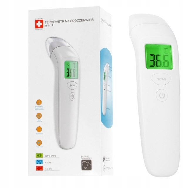 Termometr na podczerwień bezdotykowy to urządzenie, które pozwala na bezkontaktowe pomiaranie temperatury ciała lub przedmiotów za pomocą promieniowania podczerwonego.