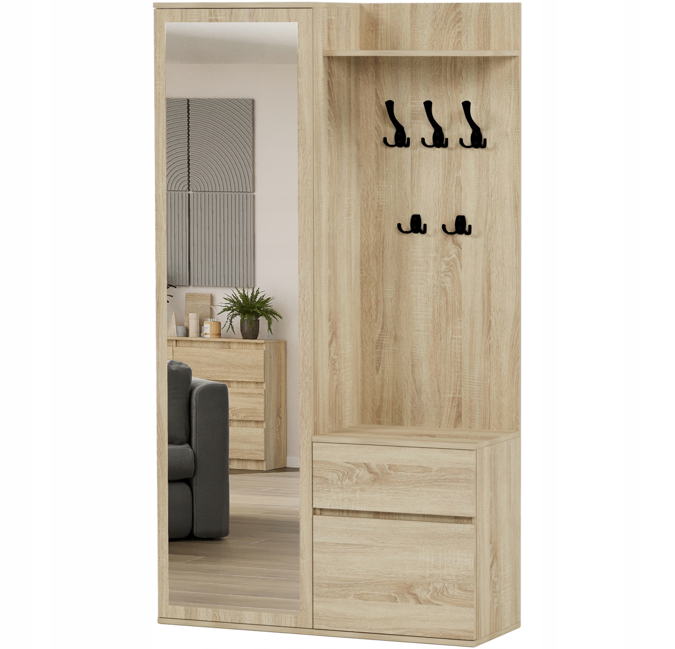 Мы предлагаем полный гардероб для прихожей V-5, разработанный с учетом максимальной функциональность и элегантность. Наш комплект состоит из двух компонентов: шкафа с зеркалом и шкафа с вешалкой, обеспечивая подходящее место для хранения одежды и обуви.