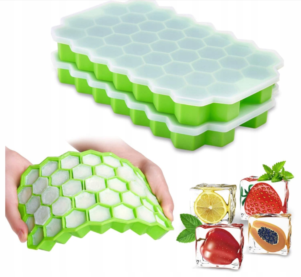 w zestawie zdejmowana pokrywa zapobiega zarówno rozlaniu jak i wchłanianiu zapachów zamrażarki przez kostki lodu.