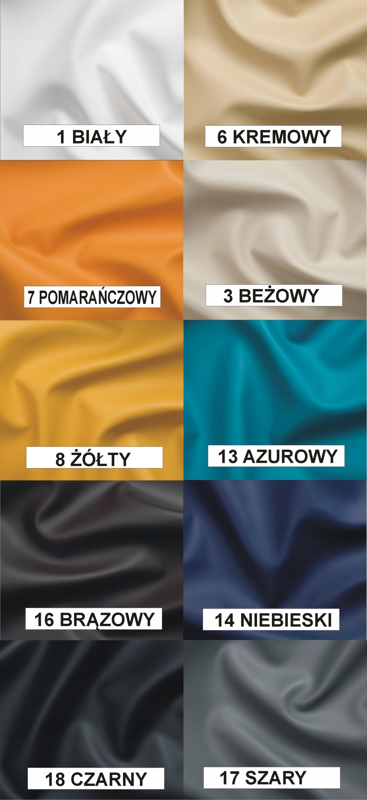KOLORY I TKANINY DO WYBORU NA ZDJĘCIACH PRÓBNIKÓW.