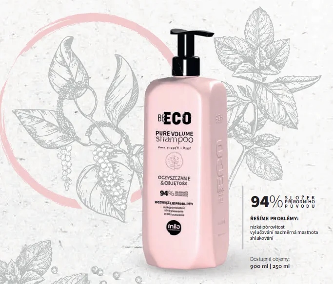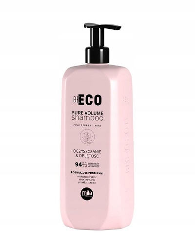 Szampon BE ECO Pure Volume dokładnie oczyszcza włosy i skórę głowy, zwiększa objętość i unosi włosy u nasady.