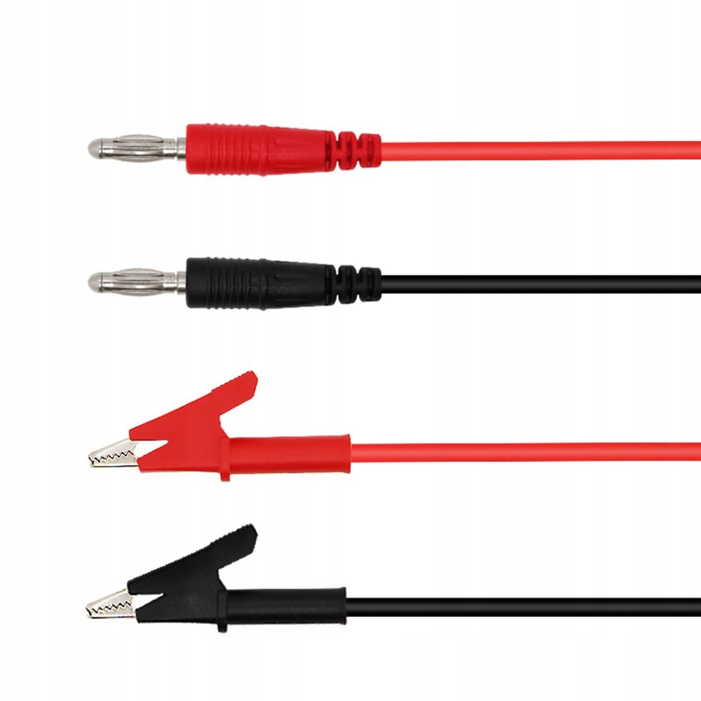 ✅ Zestaw zawiera: 2 sztuki przewodów pomiarowych (czarny oraz czerwony) zakończonych krokodylkami