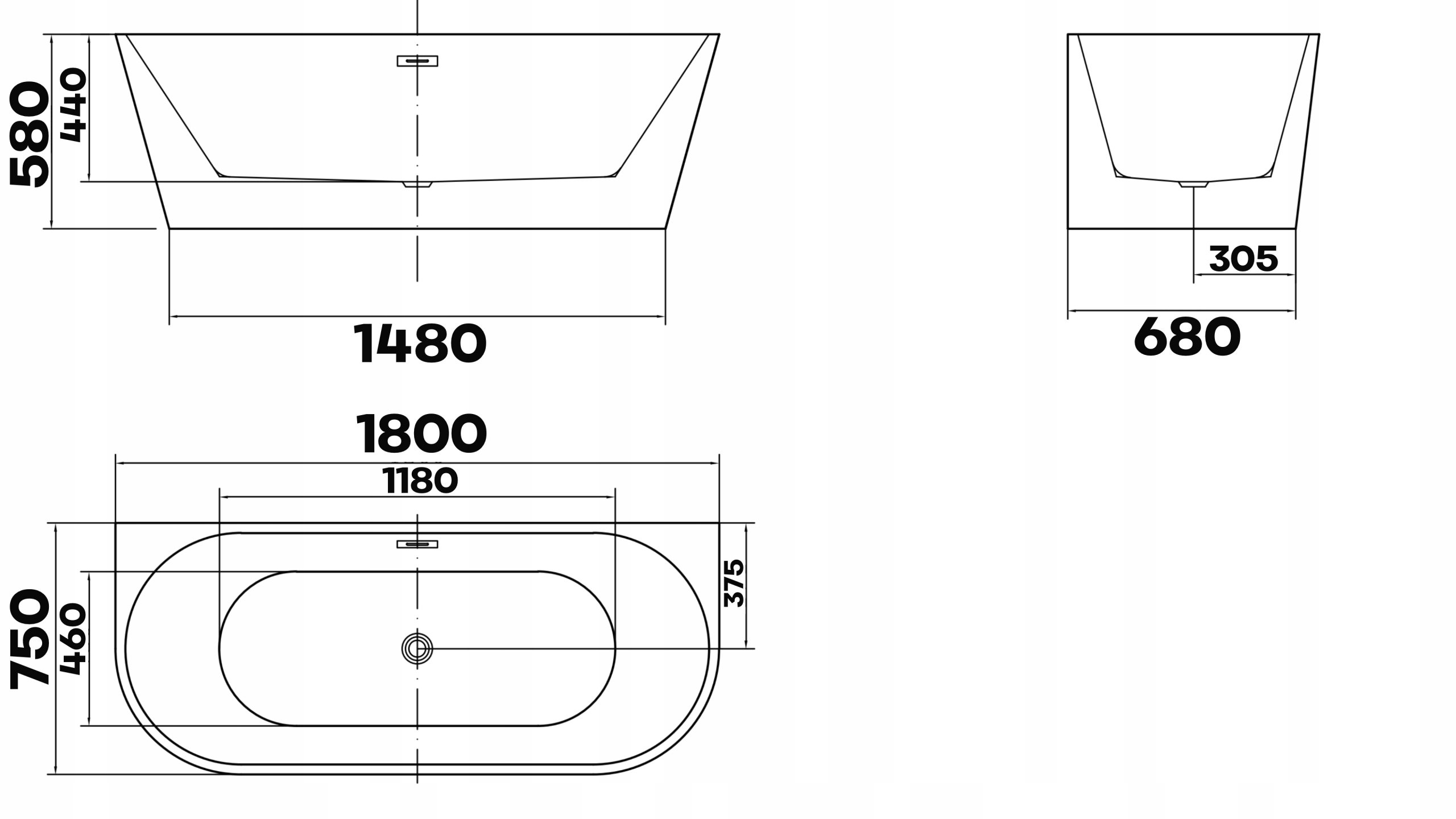 Тип ванны отдельностоящая