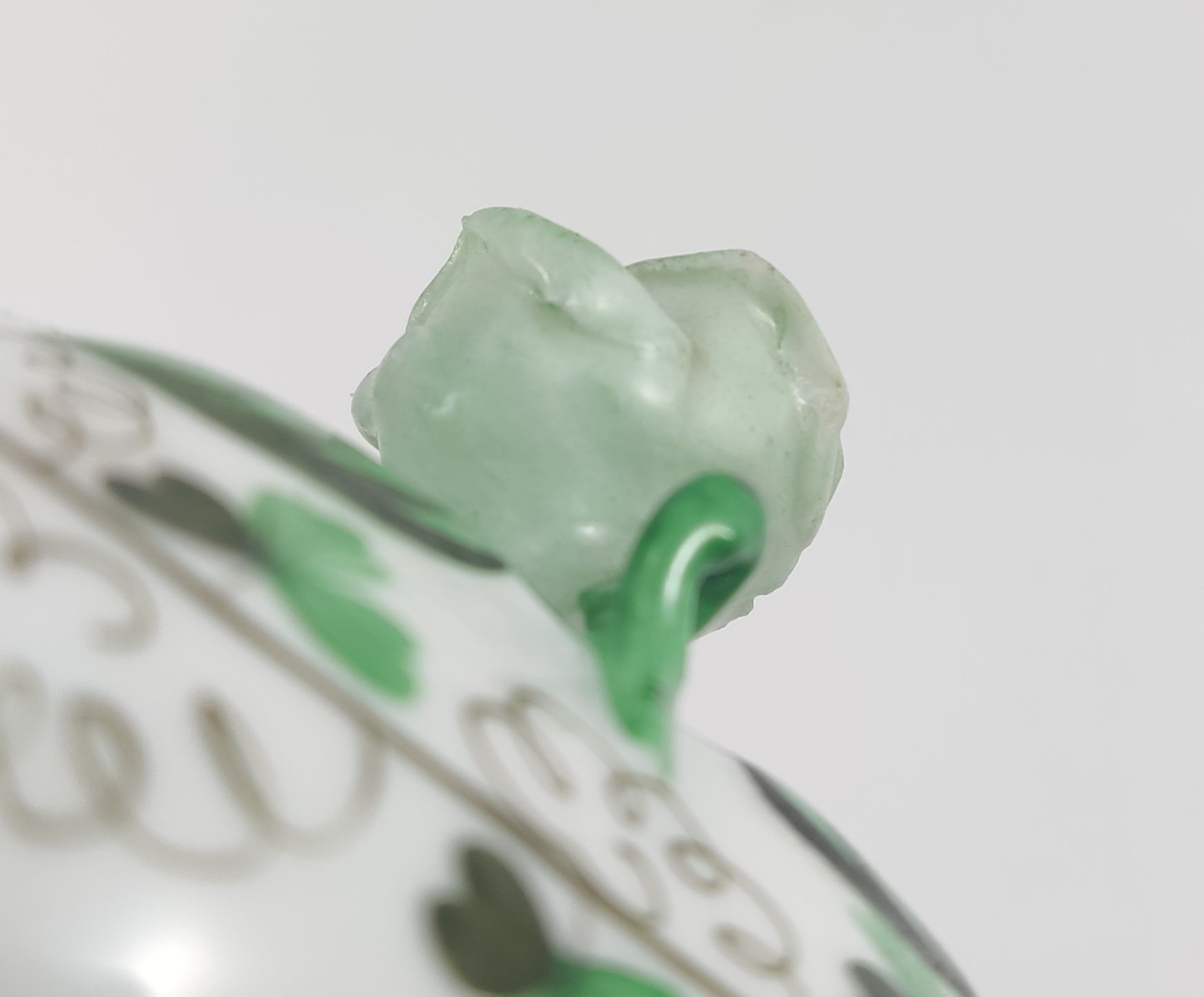 Kwiatuszek ma nieduże uszczerbienie od spodu, oprócz tego porcelana jest w idealnym stanie bez uszkodzeń.