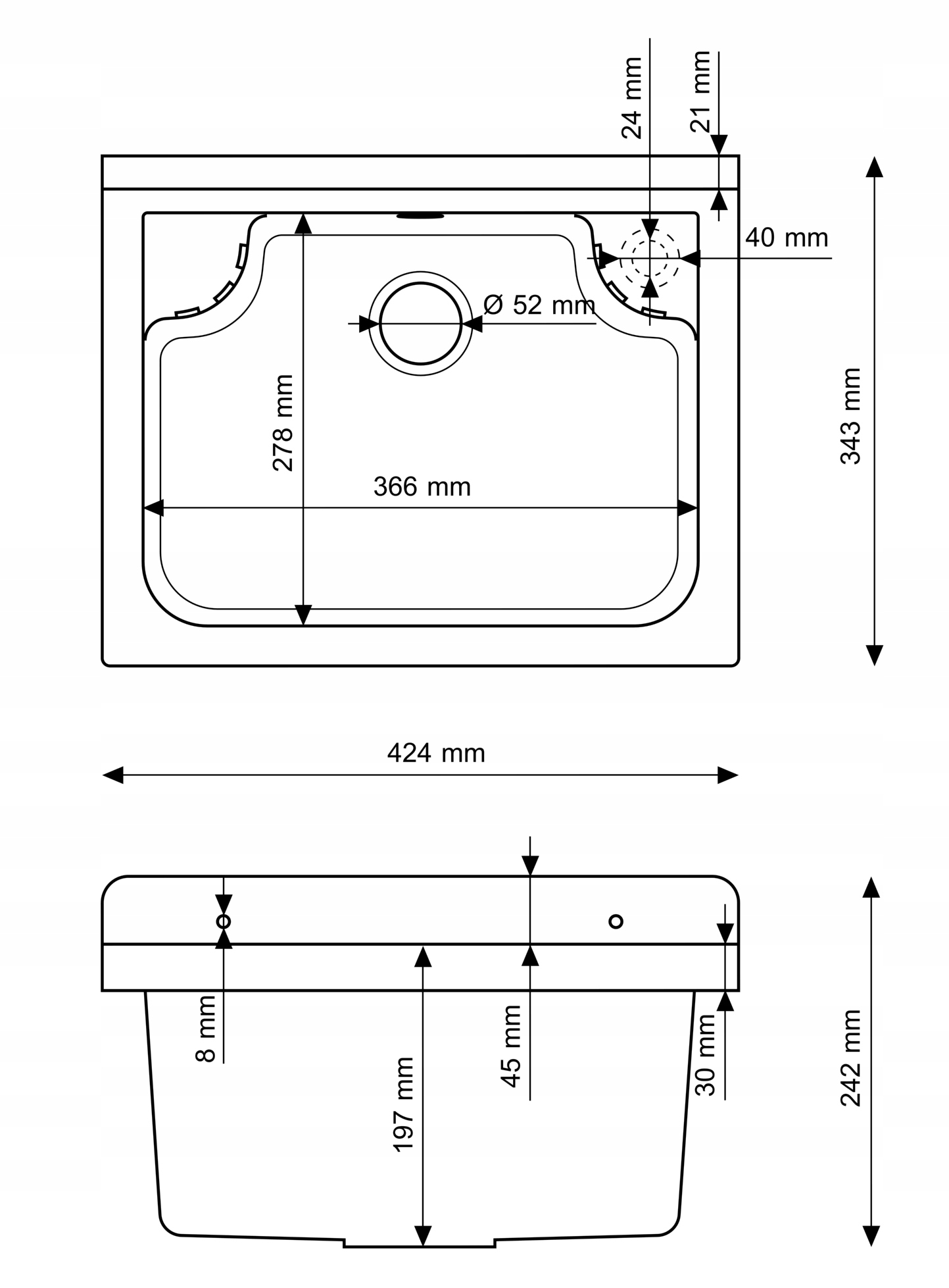 Zlew został wykonany z polipropylenu, który charakteryzuje się wysoką odpornością na różnego rodzaju związki i substancje chemiczne. W szczególności wykazuje dużą neutralność na działanie rozpuszczalników, zasad czy kwasów. Dodatkowo materiał nie absorbuje wody.