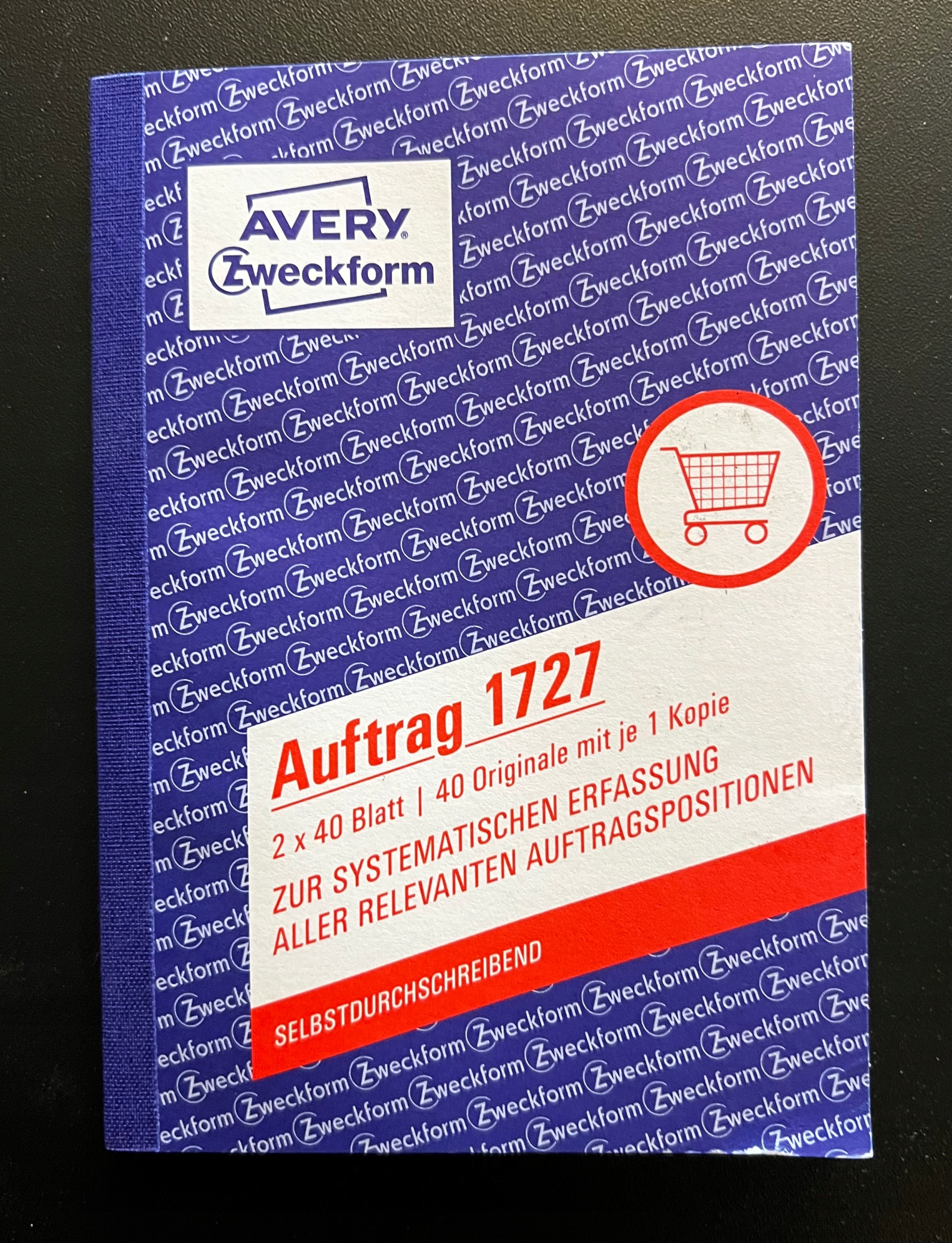 AVERY Zweckform Zamówienie 1727 (A6, 2 x 40 arkuszy, samokopiujące z kolorowym przetargiem, do systematycznego rejestrowania wszystkich istotnych pozycji zamówienia)