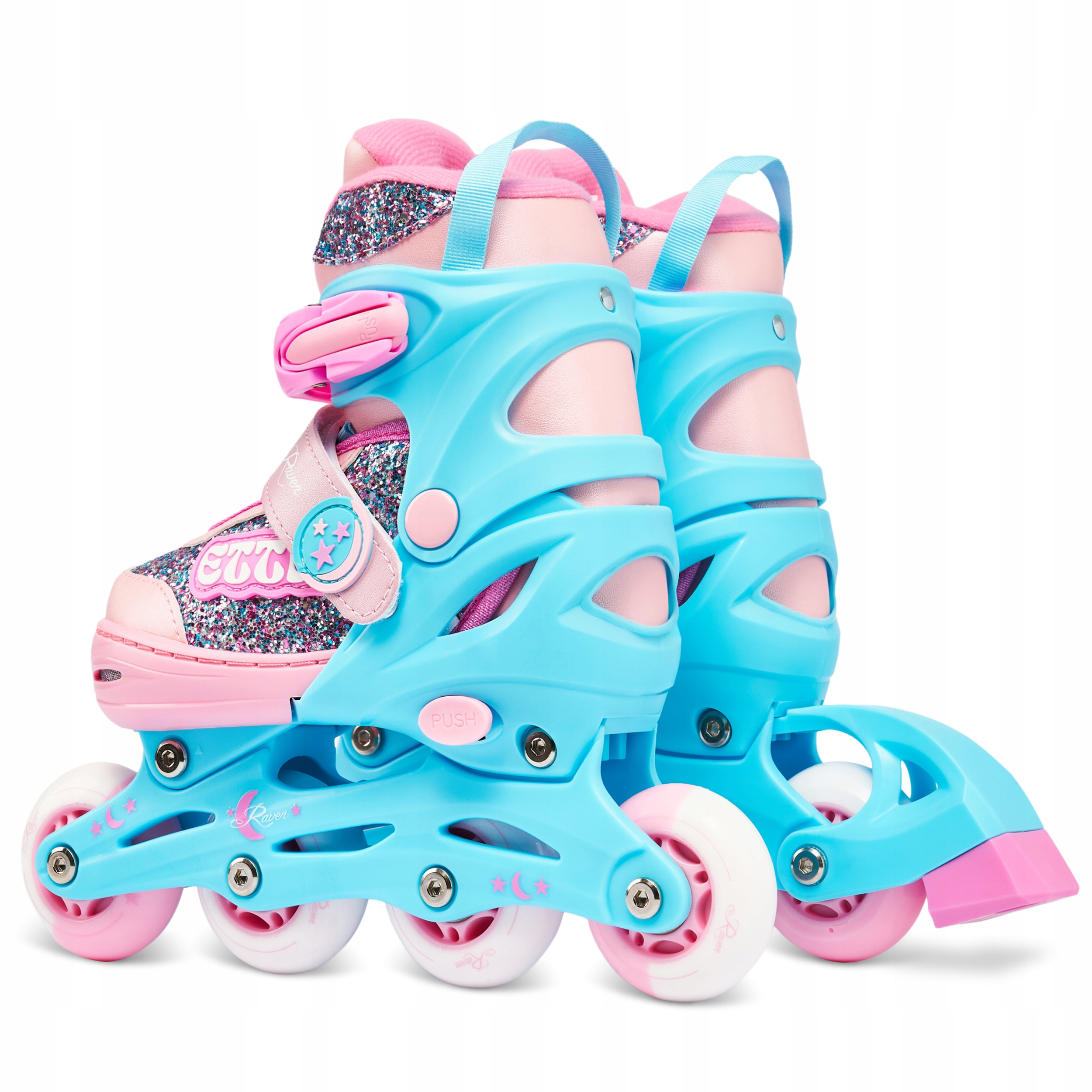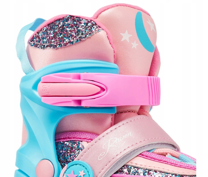 Sznurowadła, klamra z paskiem zębatym oraz zatrzask zapewniają odpowiednie ściągnięcie i pewne trzymanie stopy w bucie, zapobiegają przemieszczaniu się stopy i gwarantują bezpieczną jazdę. Zatrzaski w rolkach Raven posiadają przycisk, który zapobiega ich rozpinaniu podczas jazdy. Pasek na rzep pozwala przytrzymać sznurowadła, powstrzymując je przed przypadkowym rozwiązaniem.