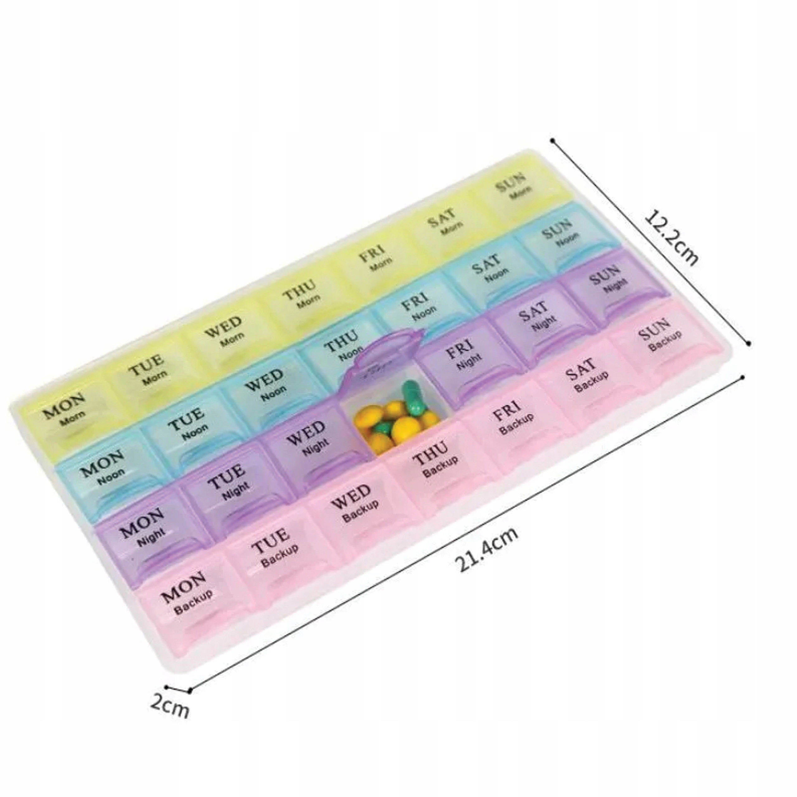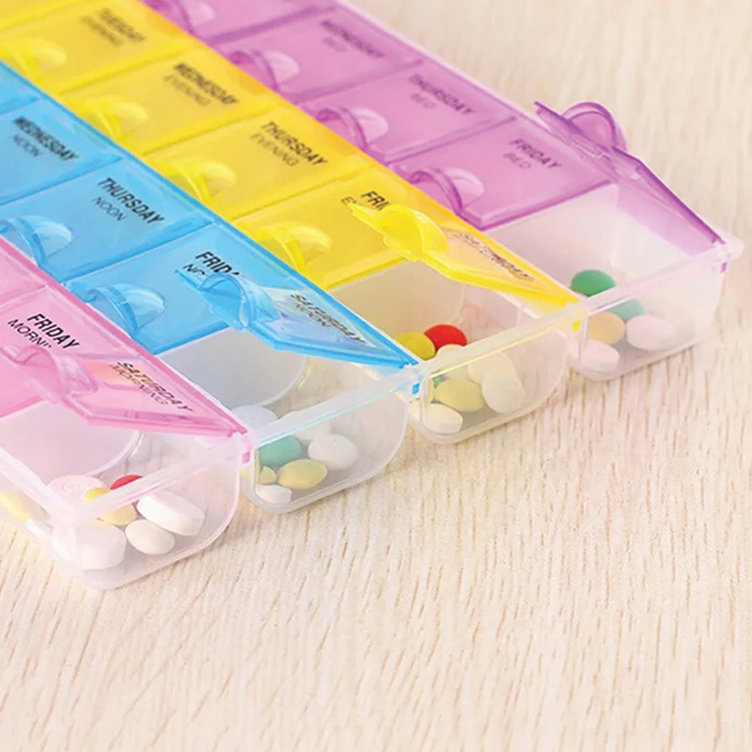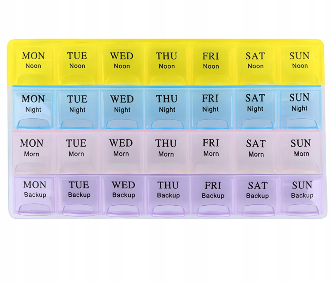 Organizer na tabletki tygodniowy, to niezastąpiony produkt dla każdego seniora, który ułatwi zażycie odpowiednich leków w danym dniu tygodnia i o właściwej porze dnia, dzięki temu będziemy pewni, że leki były przyjęte prawidłowo.