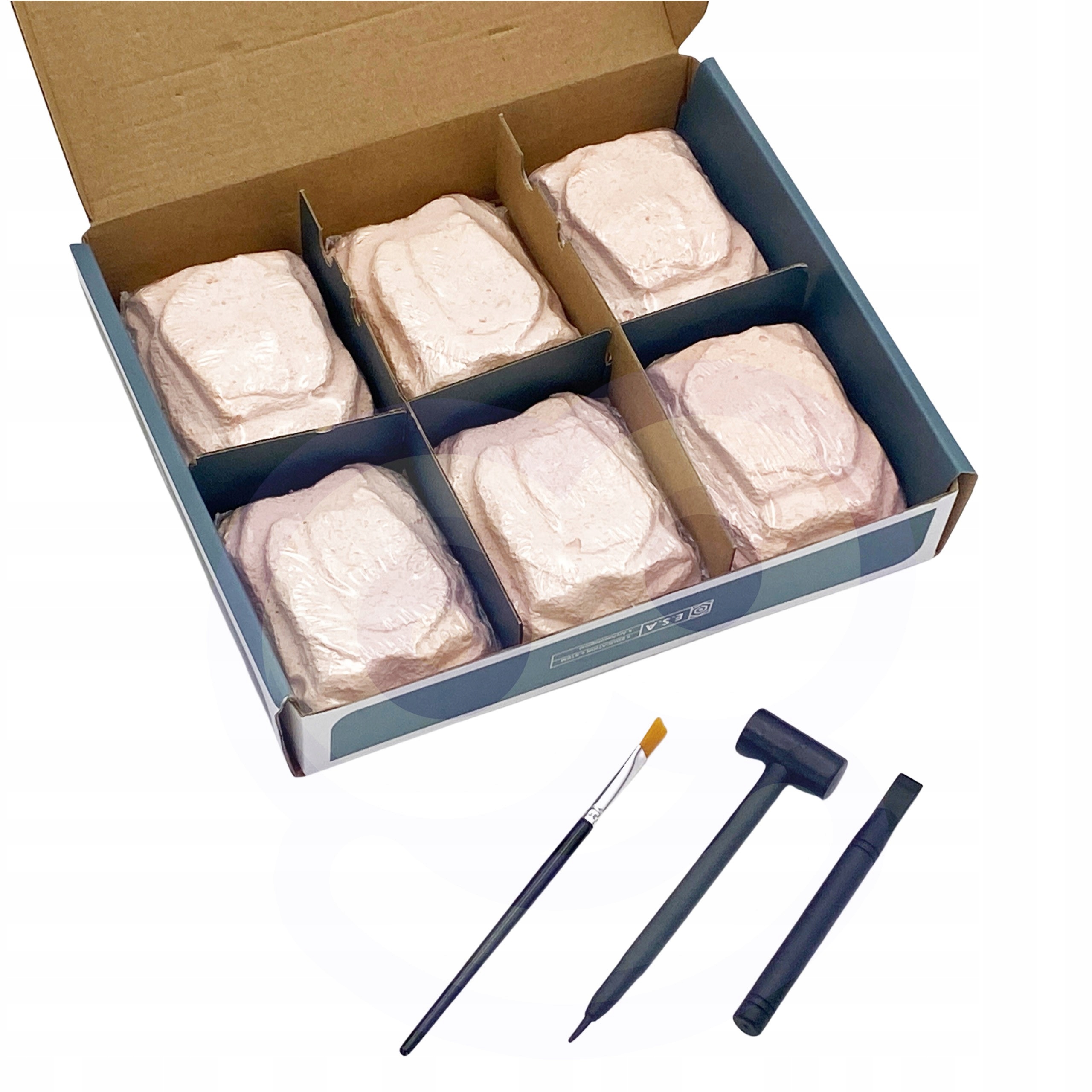 Zestaw Skamielin marki Woopie to kompletne laboratorium małego paleontologa. W pudełku czeka sześć osobnych skał z ukrytymi mini‑szkieletami dinozaurów oraz zestaw narzędzi: młoteczek, dłuto i pędzelek. Każdy blok to oddzielna misja – kruszysz, odkrywasz elementy i delikatnie je oczyszczasz, by na końcu z dumą zaprezentować swoje znalezisko. Zestaw łączy naukę z zabawą, rozwija cierpliwość, dokładność i koordynację, a dzięki sześciu bloczkom idealnie sprawdza się dla jednego dziecka lub grupy przyjaciół.