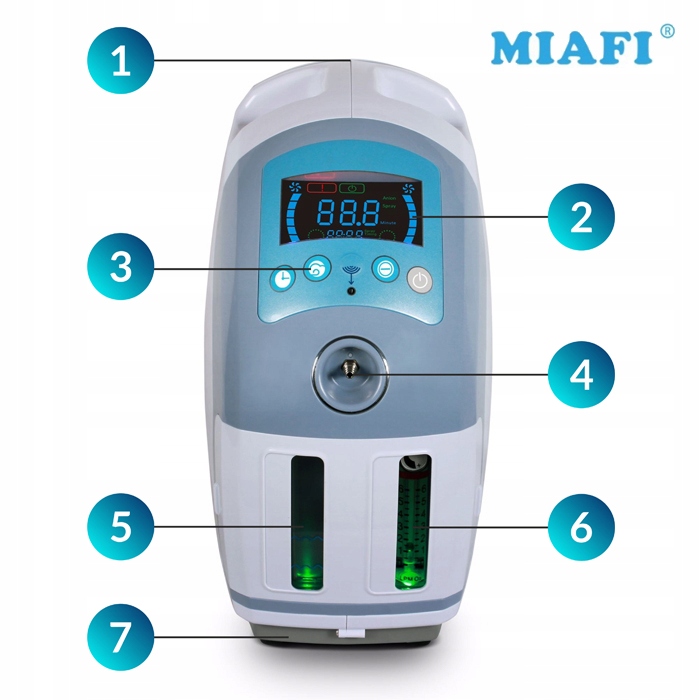 Кислородный концентратор работает по принципу метода адсорбция при переменном давлении (PSA), во время которой азот из воздуха в помещении связывается через цеолит, что позволяет машине концентрировать кислород. Концентрация, производимая концентратором кислород можно регулировать. Машина проста в эксплуатации. Функциями устройства можно управлять с помощью интуитивно понятной панели управления с большим цветным светодиодным дисплеем, а также с помощью пульт дистанционного управления в комплекте. Концентратор оснащен таймером включения и выключение. Кроме того, устройство имеет независимую от системы выработки кислорода функцию ионизация. Отрицательные ионы распределяются через выпускные отверстия. Благодаря многоуровневой системе фильтрации поступающего воздуха, выход кислорода из машины свежий и чистый, а встроенный моющийся увлажнитель дает вам больше комфорта во время кислородной терапии. Кислородный концентратор отлично подойдет помощь в лечении людей с респираторными заболеваниями в домашних условиях.
