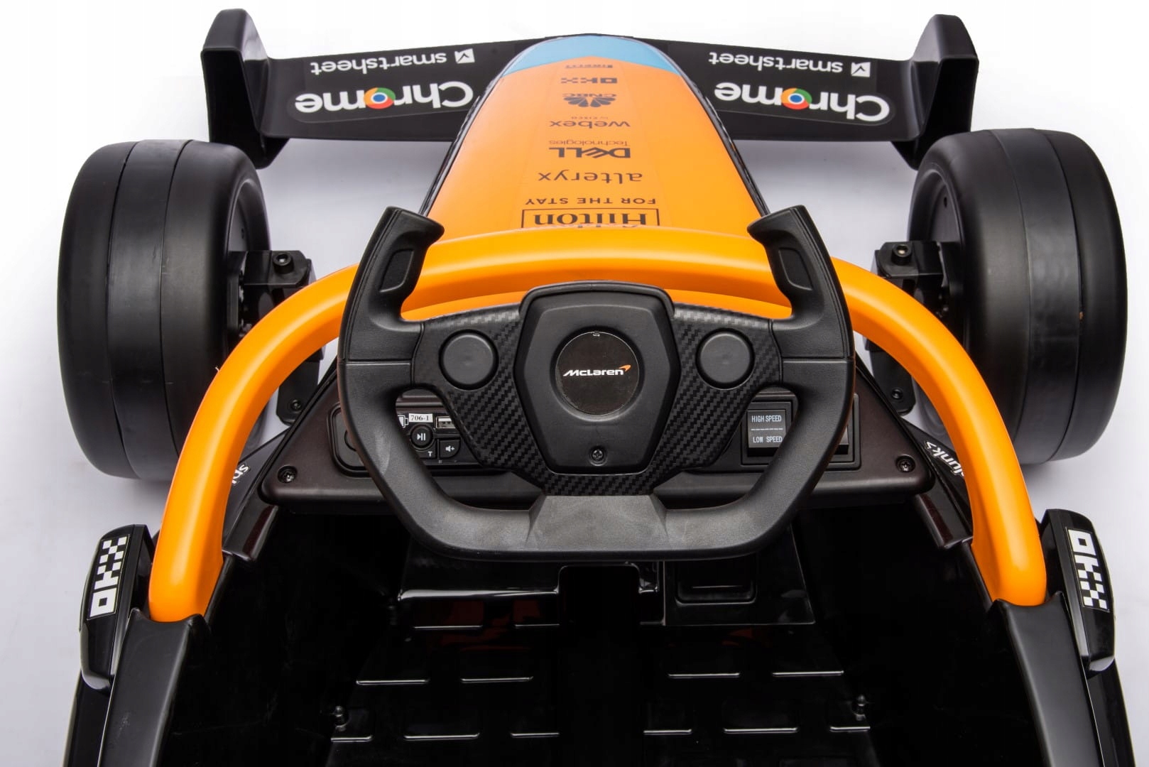 Oferujemy Państwu wyjątkowy pojazd elektryczny dla dzieci - auto na akumulator Bolid Quad McLaren w energetycznym pomarańczowym kolorze. Ten imponujący pojazd nie tylko zachwyca swoim wyglądem, ale również bogatą funkcjonalnością, która dostarczy niezapomnianych wrażeń każdemu małemu kierowcy.
