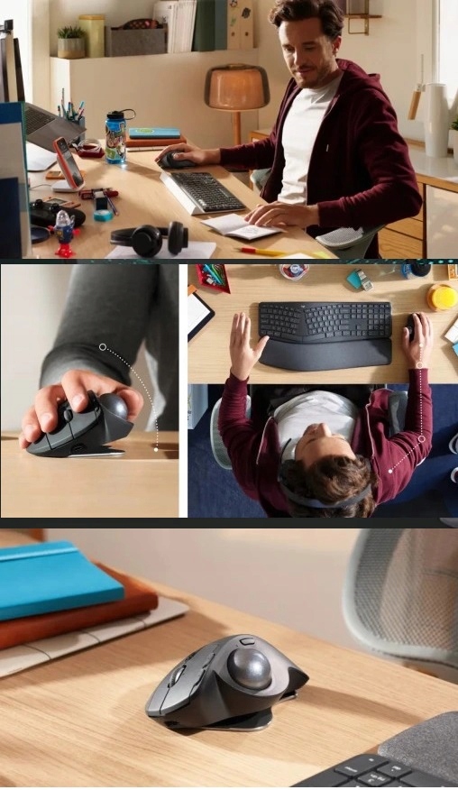Brak potrzeby poruszania ręką w celu przesuwania kursora sprawia, że możesz pracować bardziej wydajnie. Trackball zmniejsza wysiłek mięśni dłoni, nadgarstka i przedramienia o 20% w porównaniu do zwykłej myszy. Ponadto wyjątkowy układ regulacji nachylenia MX ERGO umożliwia dostosowanie go pod kątem 0 lub 20°, aby błyskawicznie poprawić ułożenie nadgarstka i przedramienia. Pokonaj wyzwania dnia łatwiej i w większej wygodzie oraz skoncentruj się na tym, co masz do zrobienia.