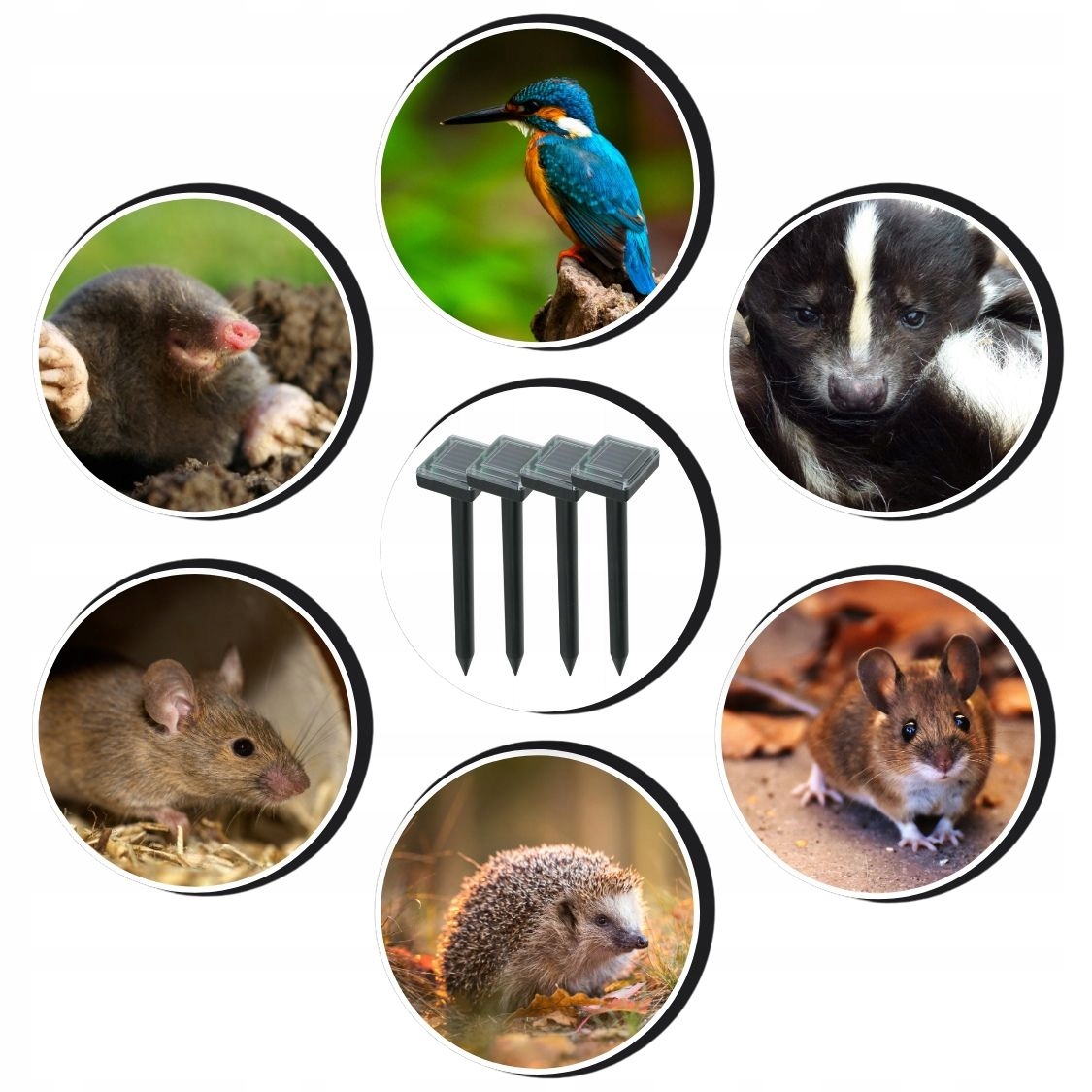 Zestaw zawiera cztery odstraszacze kretów i emituje ultradźwięki przez 4 sekundy, co 30 sekund. Ponieważ słuch kretów jest bardzo wrażliwy na wibracje podłoża, są one niepokojone ultradźwiękami i przenoszą się gdzie indziej. Stopień ochrony tego urządzenia to IPX6, dzięki czemu nadaje się ono do użytku nawet w deszczowe dni. Odstraszacz ochroni przed kretami Twój ogród na dystansie do 3400 m2!
