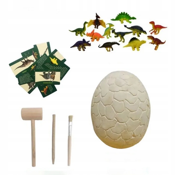 Odkryj fascynujący świat prehistorii z naszym Zestawem Małego Archeologa! To doskonały prezent dla dzieci powyżej 6 roku życia (młodsze pod nadzorem dorosłego), które pragną poczuć się jak prawdziwi archeolodzy. W środku znajdziesz wielkie jajko o wysokości 15 cm, w którym ukrytych jest aż 12 miniaturowych dinozaurów oraz 2 dodatkowe elementy niespodzianki.