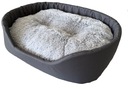 Legowisko jest uszyte z materiału który jest wodoodporny (zewnętrzne poszycie). Z poduszką która jest miękka i puszysta tworzy bardzo wygodne miejsce do spania dla pieska -kotka .