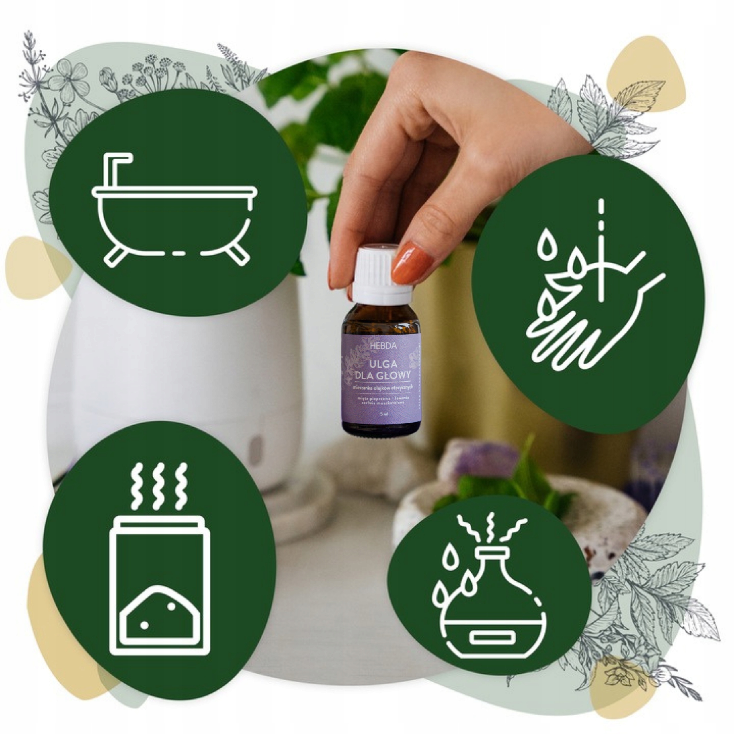 Olejek eteryczny "Ulga dla głowy" zawdzięcza swoją nazwę mieszance aż 8 naturalnych olejków eterycznych, których połączenie uwalnia aromat działający kojąco i wyciszający natłok myśli. Zapach przynosi ulgę, jeśli masz wrażenie, że zaraz nie wytrzymasz. Poprawia ogólny stan relaksu. Jeśli borykasz się z PMS wykonaj aromaterapie z użyciem naszego olejku, a uwalniany miętowo - orzeźwiający zapach pomoże Ci się wyciszyć. .