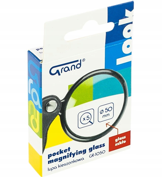 – soczewka wykonana ze szkła, nietłukąca, odporna na zarysowania – obudowa z tworzywa sztucznego – chowana w etui – powiększenie: x5 – średnica: 50 mm