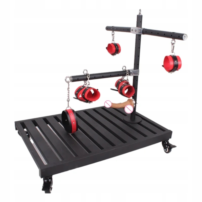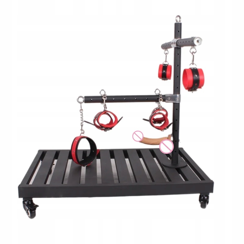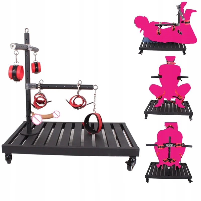 Produkt zawiera: 1 płytę główną samochodu, 1 kolumnę, 1 belkę długą, 1 belkę krótką, 4 zestawy śrub pierścieniowych, 1 zestaw wsporników mocujących penisa, 2 płyty wzmacniające kolumny, 1 zestaw śruby mocujące kolumnowych i 1 klucz sześciokątny, 1 torba do przechowywania, 1 para kajdanek, 1 para kajdan, 1 kołnierz, 1 para mankietów na ramię, 4 uniwersalne koła.