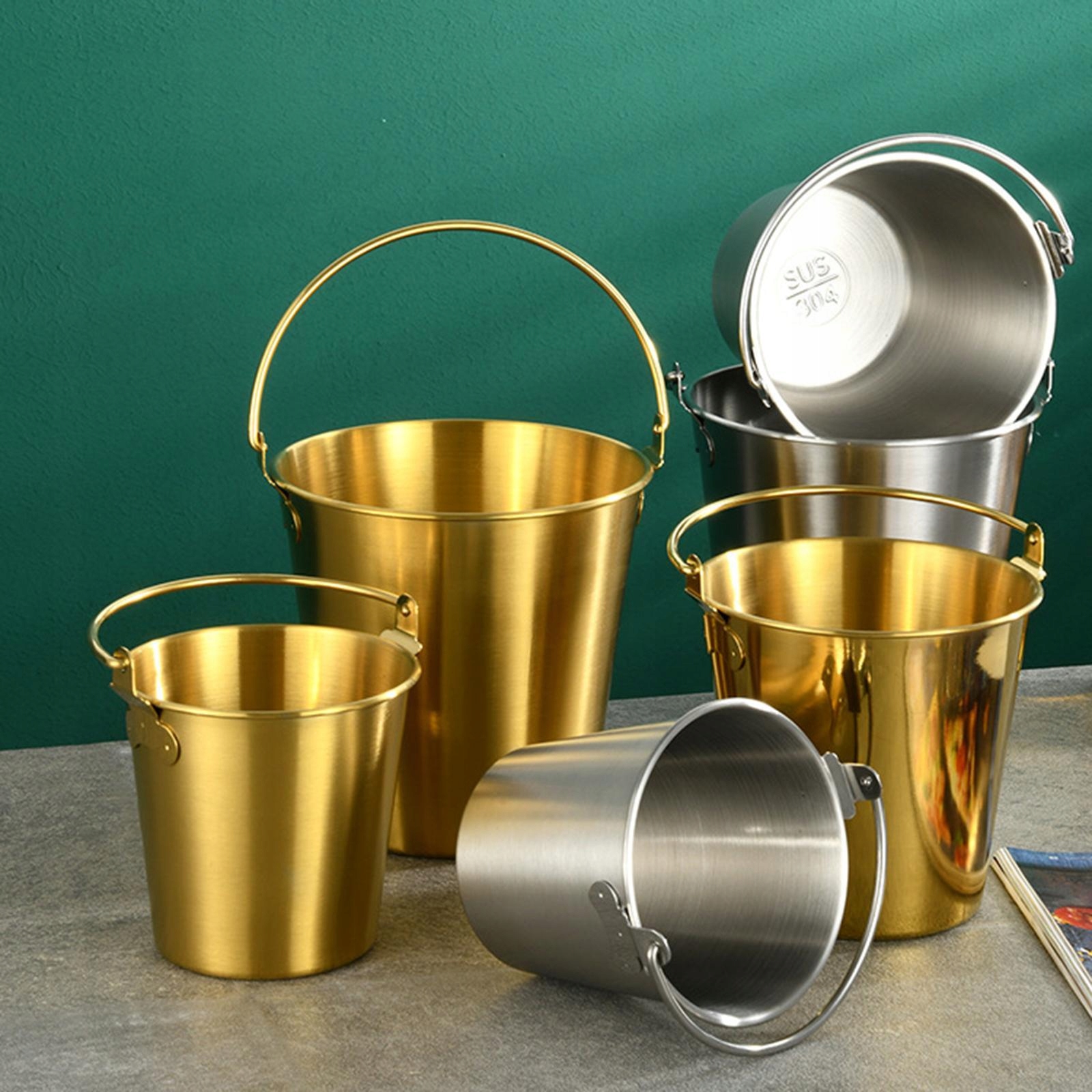 [Przenośny]: To wiaderko na lód ze stali nierdzewnej jest lekkie, kompaktowe, idealne na imprezy, wydarzenia lub zajęcia na świeżym powietrzu.