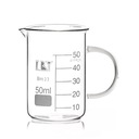 Wysokiej jakości laboratoryjna zlewka szklana 50 ml z wylewem i uchem jest wykonana ze szkła borokrzemowego 3.3. Odporna na działanie gorącej wody, roztworów zasadowych i kwasowych. Zlewka z uchwytem posiada precyzyjną, białą skalę i jest przeznaczona do odmierzania surowców zarówno w domowym, jak i profesjonalnym laboratorium.