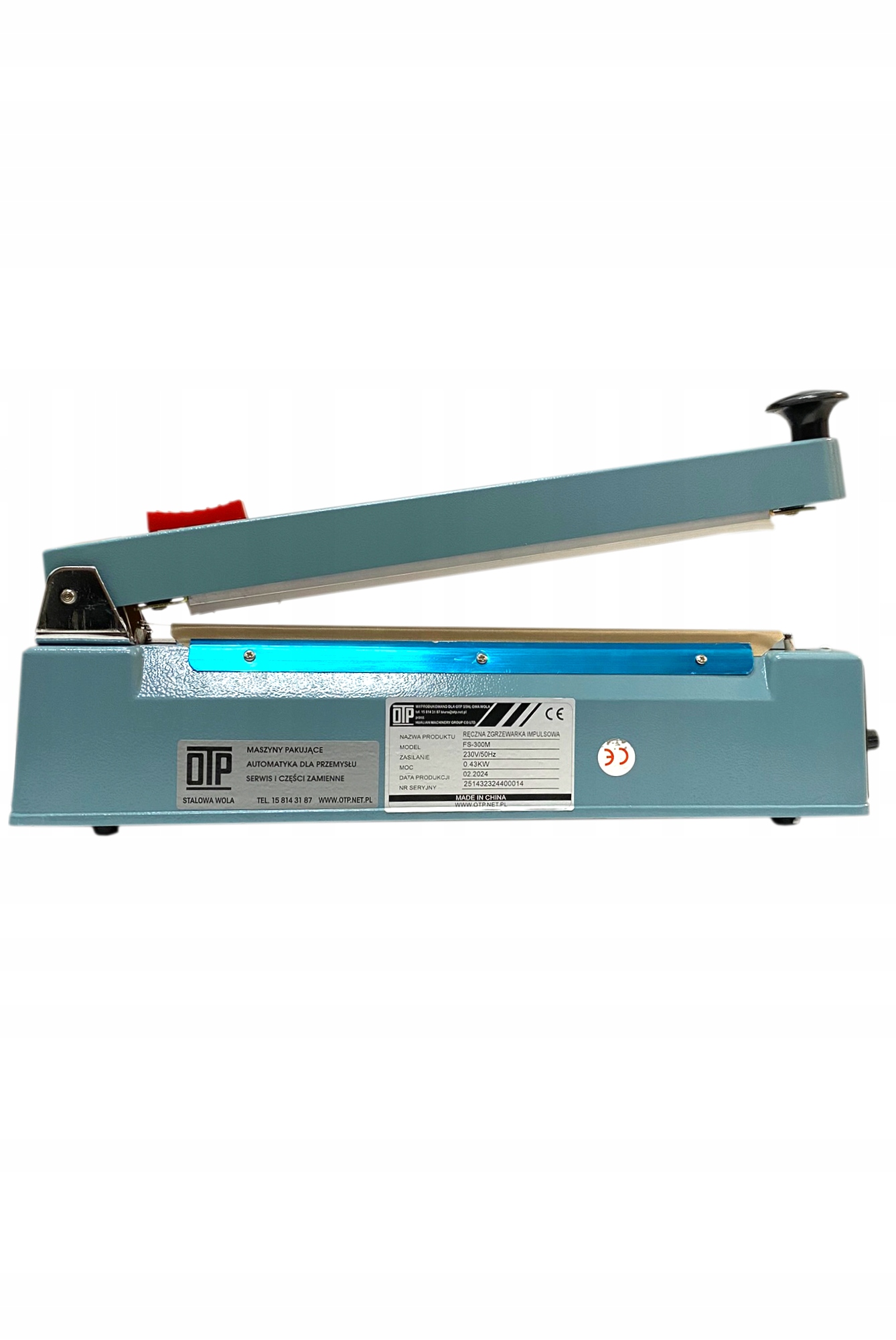 Ręczna zgrzewarka impulsowa do zamykania worków oraz różnego rodzaju folii w szczególności do LDPE, PET, PE itp. Na panelu sterowniczym ustawiamy długość czasu zgrzewu w zależności od grubości worka. Po załadowaniu worka, operator musi tylko wsunąć otwarty koniec pomiędzy szczęki i docisnąć ręcznie ramię zgrzewarki. Zgrzewarka posiada ręczny nóż odcinający który jest zamontowany w środku ramienia dociskającego (wystarczy przesunąć podczas zgrzewania uchwyt z nożem), odcina nadmiar folii 7 mm za zgrzewem.
