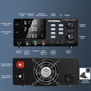 Zasilacz wyposażony jest w wyświetlacz. Wyświetlane na nim wartości są dobrze widoczne w każdych warunkach oświetleniowych. W górnej części panelu czołowego mamy wyświetlacz podpisany literą V- jest to woltomierz mierzący wartość napięcia jakie jest ustawione na zaciskach wyjściowych zasilacza laboratoryjnego. W środkowej części mamy wyświetlacz podpisany literą A - jest to amperomierz. Amperomierz mierzy wartość prądu wypływającego z zasilacza, W dolnej części znajduje się wyświetlacz W Ah, pokazuje wartość aktualnej mocy (W), lub ładowania (Ah)